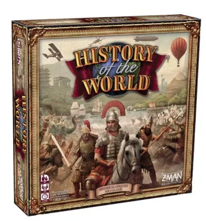 Accueil Jeux History Of The World, partez à la conquête du monde chez Edge Entertainment ! History Of The World, partez à la conquête du monde chez Edge Entertainment !Benjamin Guimbert·JeuxCritique·8 juin 2018 à 13h08 Benjamin Guimbert History Of The World est un jeu de Gary Dicken, Steve Kendall et Phil Kendall. Illustré par Antonio Mainez et Mateusz Leinert. De 3 à 6 joueurs, à partir de 14 ans, pour des parties de 120 à 180 minutes. Édité par Z-Man Games et pour la version française Edge Entertainment, distribué par Asmodee. Le jeu a également traversé des époques. La 1ère édition est sortie en 1991, suivie de 2 éditions en 1993. En 2001, une 3ème édition vit le jour avant de laisser place à l’avant dernière version, qui se jouait en 6 Périodes au lieu de 7, avec A Brief History Of The World. Synopsis : Durant 5 différentes Epoques, de I à V, des 1ères civilisations au XXème siècle. Prenez le commandement de différents Empires en pleine apogée de leur gloire. Partez à la conquête de nouveaux Territoires tout en développant vos Empires. Serez vous le Commandant victorieux ? Mise en Place, pour une partie à 4 joueurs : Choisissez une couleur et prenez les Armées ainsi que le marqueur score de la couleur correspondante. Placez au hasard les marqueurs de score de tous les joueurs sur la piste de score, respectivement sur l’emplacement 1, 2, 3 et 4. Mélangez séparément chaque paquet de cartes de chacune des Périodes. Faites de même avec les cartes Événement. Piochez 4 cartes de chacun des paquets pour constituer 5 piles pour les cartes Empire et 5 piles pour les cartes Événement. Les cartes Événement peuvent apporter soit des Améliorations soit des Royaumes (voir jouer un Royaume, un tout petit plus bas dans le texte). Les pions Région sont eux aussi triés par Périodes et placés au dessus de la pile Empire correspondante. Les autres éléments, dés, Forts, Capitoles et Villes, Monuments, marqueurs Flotte/Caravane et pions Sièges sont placés à disposition des joueurs. Les Régions sont composées de plusieurs Territoires, de même couleur, séparés par des frontières. (Cf. photo ci-dessus). Tour de Jeu : Placement de pions Région : En fonction de la Période, placez les pions Région sur les emplacements correspondants, côté points visibles (3 valeurs différentes). Si un pion Région est déjà placé, remplacez le par le nouveau. Sur cette face sont indiquées la ou les Périodes où il reste en jeu. Vient ensuite le choix des cartes Empire. Le joueur ayant le score le plus élevé sur la piste de Score choisit une carte parmi toutes celles de la pile, toujours en fonction de la Période où il se trouve. Il passe la pile au joueur situé en 2ème position, etc. Inversement pour les cartes Evénement, le dernier joueur sur la piste de Score effectue le même procédé que pour les cartes Empire, puis il passe le paquet de cartes au joueur placé en avant dernière position, etc. Ce processus diffère légèrement pour des parties à 3 et à 5 joueurs. Les cartes Empire définissent un nouvel Ordre de tour indiqué sur la bordure gauche de la carte et au dos de celle-ci (Cf. photo ci-dessous). Le joueur au score le plus élevé appelle chaque Empire dans l’ordre (de haut en bas). Lorsque que votre Empire est appelé, posez votre carte face visible et effectuez votre tour de jeu : Prendre la Catapulte Elle identifie le 1er joueur et permet de suivre les modificateurs (Siège) lors des Batailles. Jouer un Royaume Vous pouvez choisir de jouer une carte Événement Royaume de cette Période. Si tel est le cas vous ne pourrez la jouer qu’à cette Période. Un Royaume peut être considéré comme un Empire mineur car il possède des éléments en commun avec une carte Empire (Territoire de départ, Flotte, Armée, Maraudeurs.). Avant de jouer votre Empire, résolvez les étapes suivantes de votre Royaume : . Établir un Empire . Envahir . Construire des Monuments . Placer des Armées en reddition Certains Royaumes sont établis avec une Ville ou un Capitole. Vérifiez l’icône en bas à droite de la carte (Cf. photo ci-dessous). Il est important de noter que les Royaumes ne peuvent pas être gardés pour être joués plus tard. Ils sont nécessairement joués lors de la Période en cours. Si vous jouez un Royaume vous ne pourrez pas jouer d’Amélioration. L’effet de l’Empire ne s’applique pas à votre Royaume. . Établir un Empire La carte Empire vous donne toutes les indications quand à l’établissement de votre Empire. Placez ensuite une des Armées reçues sur le Territoire indiqué ainsi qu’un Capitole si l’icône est présent sur la carte. De même si une Flotte ou une Caravane sont représentées en bas de la carte (Cf. photo ci-dessous). Retirez les Armées, Capitoles, Villes et Monuments se trouvant déjà sur le Territoire. . Envahir Cette action vous fera marquer des points. Étendez votre Empire en envahissant les Territoires limitrophes à l’aide de vos Armées. 1 Armée est représentée par 1 pion Armée. Vous pouvez effectuer autant d’invasions que d’Armées en votre possession. – Si le Territoire est vide, placez directement votre Armée active. – Si le Territoire est occupé par votre Armée en reddition, votre Armée Active remplacera votre Armée en reddition qui elle retournera dans la réserve. – Si le Territoire est occupé par un adversaire, La Bataille commence !!! L’attaquant lance alors 2 dés et garde le meilleur résultat sur les 2 obtenus. Le défenseur lance 1 seul dé. L’envahisseur remporte la bataille avec un résultat de dé supérieur a celui du défenseur. A la fin de cette étape, l’attaquant peut décider de retirer une Armée sur sa carte Empire pour placer un Fort sur le Territoire qu’il occupe avec l’une de ses Armées actives. 1 seul Fort par Territoire. Le Fort donne un bonus de défense : 2 dés au lieu d’un seul. Il est retiré du Territoir