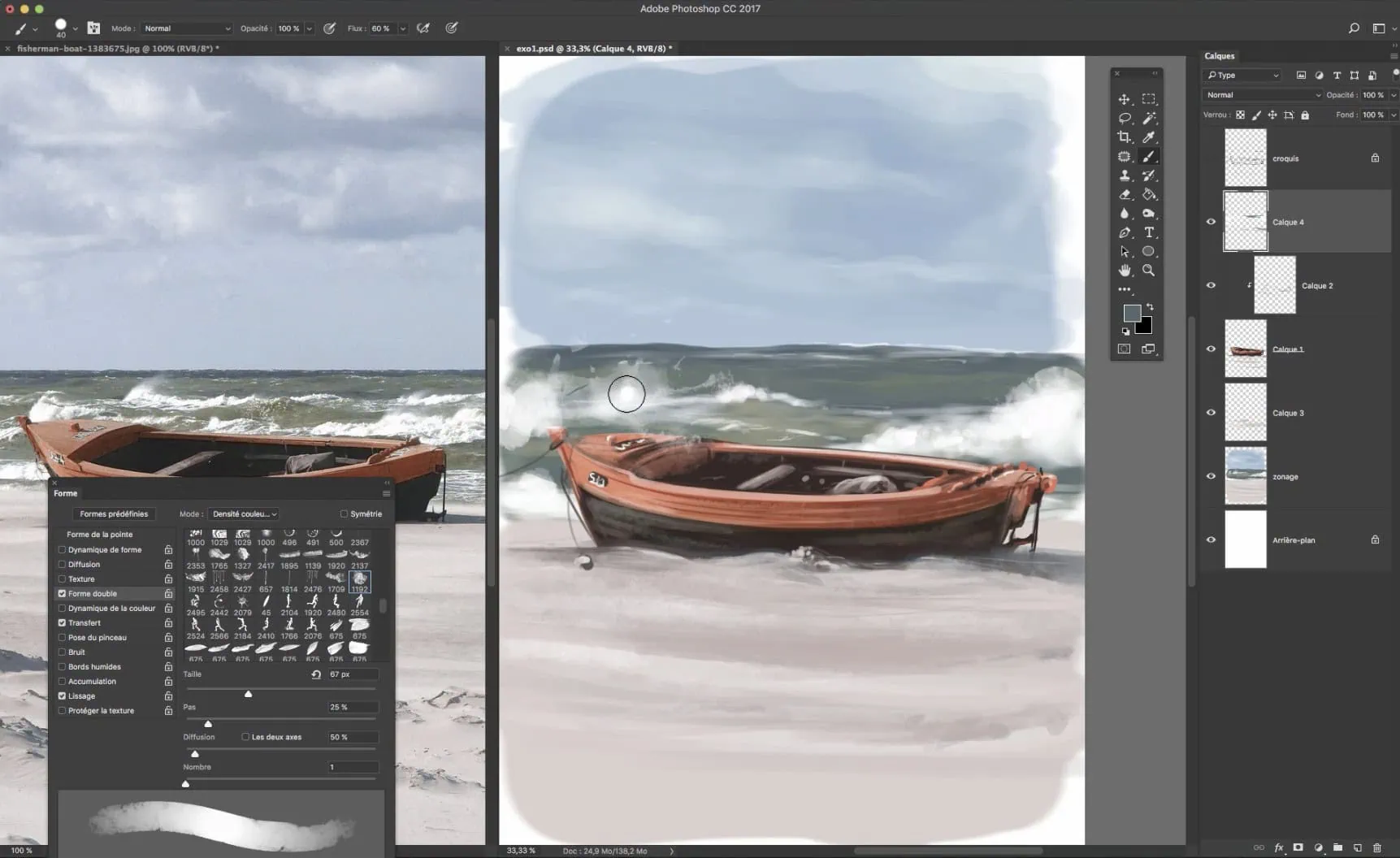 Accueil Logiciel Tuto Débuter en Peinture Numérique Tuto Débuter en Peinture Numériquezast·Logicieltuto·16 juin 2018 à 10h14 zast Vous avez Photoshop et souhaitez vous lancer dans la peinture numérique ? En partenariat avec Tuto.com, je vous propose aujourd’hui de découvrir une toute nouvelle formation en vidéo. A l’aide d’exemples concrets, vous verrez que les possibilités sont multiples et serez ensuite en mesure de réaliser vos propres projets en digital painting. A qui s’adresse ce tutoriel Réalisé par Antoine Defarges, ce tuto Photoshop s’adresse aux personnes qui débutent sur Photoshop et aussi en dessin. Pour vous, il reprendra toutes les bases et vous évoluerez à votre rythme avec notamment 4 exercices de difficulté croissante. Maîtriser les techniques de peinture numérique Durant plus de 5h, vous apprendrez à vous familiariser avec la plupart des sujets et situations possibles en peinture numérique avec au programme : La réalisation d’un bateau ; La fleur et l’Abeille ; L’aéroport ; La réalisation d’un portrait en peinture numérique. Bien entendu, pour suivre ce cours dans les meilleures conditions les fichiers sources sont fournis lorsque vous faites l’acquisition de la formation. C’est à dire que vous pourrez vous entraîner sur les mêmes exemples que ceux évoqués par le formateur. Voir aussizasttuto 15 décembre 2019 à 10h24Comment installer des mods sur les Sims 4 Préparer le document de travail À présent, voici un tutoriel offert par Tuto.com où vous apprendrez à bien préparer votre document de travail pour réaliser votre peinture numérique.
