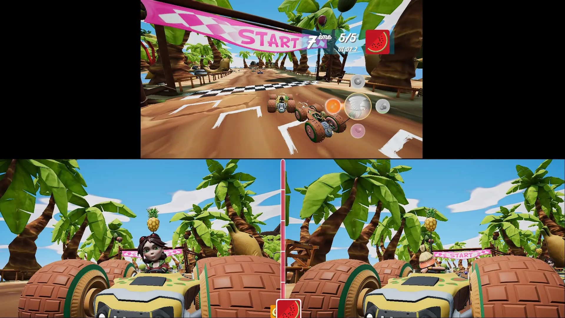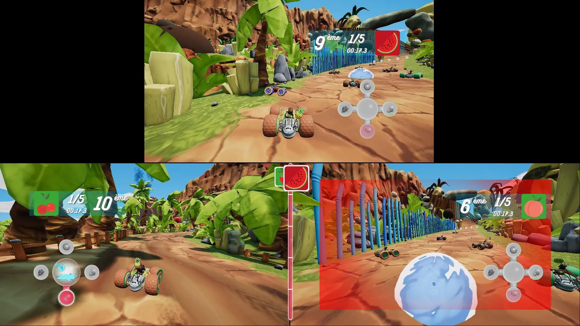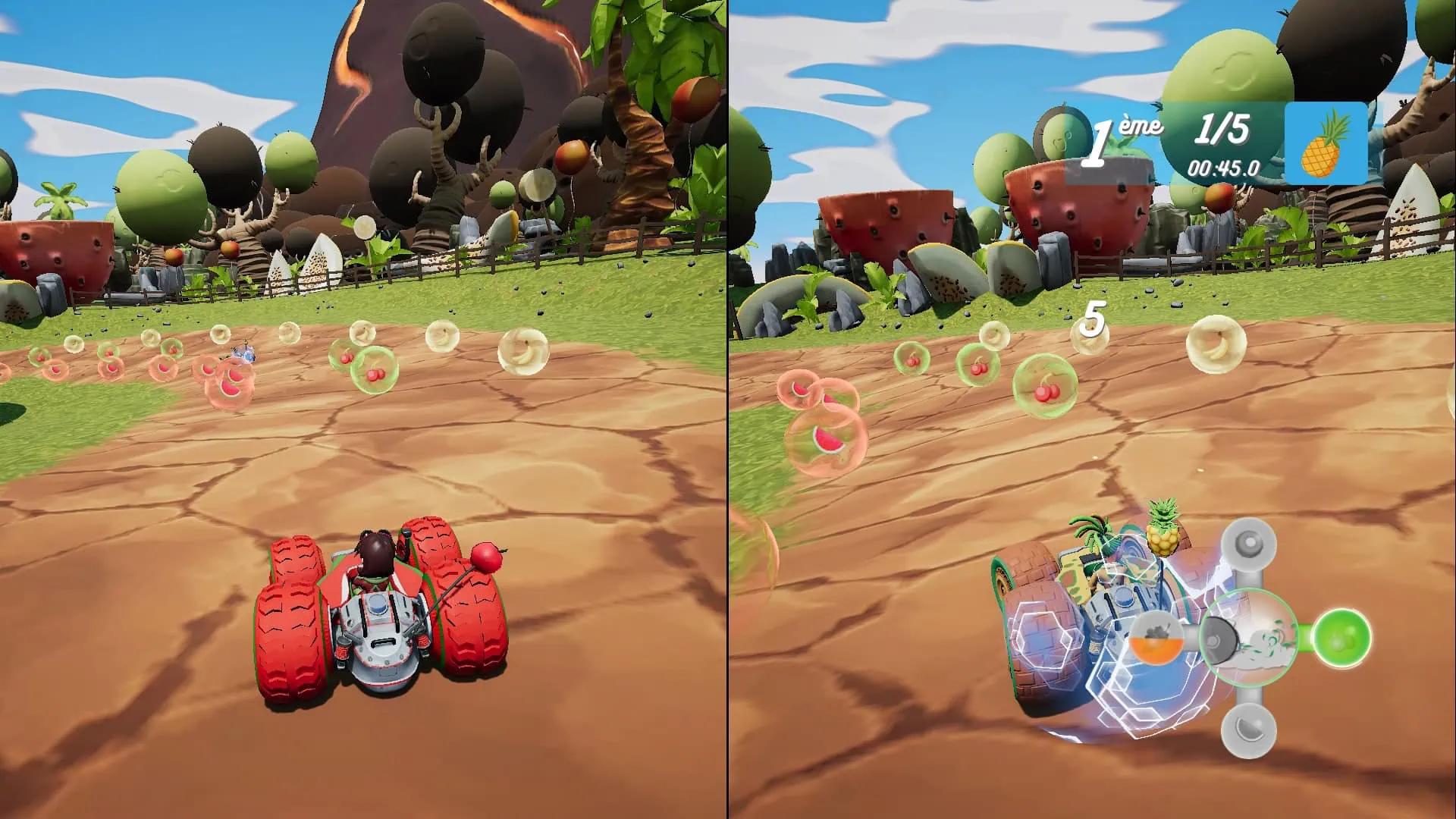 All-Star Fruit Racing ps4 Accueil Jeux Test de All-Star Fruit Racing sur PS4 Test de All-Star Fruit Racing sur PS4zast·JeuxCritique·8 août 2018 à 19h20 zast Nous vous proposons le test du jeu vidéo All-Star Fruit Racing sur PS4 (PlayStation 4). Il est aussi disponible sur d’autres plateformes comme Xbox One et Nintendo Switch ou encore sur Steam. Le jeu est édité chez PQube et 3DClouds. All-Star Fruit Racing ps4 All-Star Fruit Racing est un jeu de course de karts. La comparaison face à Mario Kart est bien entendu inévitable. Pour les possesseurs de PS4, Xbox ou PC, ce jeu est le seul qui peut combler votre manque de jouer au hit planétaire disponible depuis 20 ans environ. Pour les autres qui disposent de la console de Nintendo, vous pourrez jouer aux deux et vous amusez dans les deux cas. All-Star Fruit Racing Dans ce jeu au consonance de fruits, on doit bien entendu arriver en première position dans des courses assez folles et distrayantes. Bien entendu, il n’y a pas de règles et il faudra faire le plus de coups bas possible afin de doubler vos adversaires. Pour vous aider, vous pourrez utiliser certains pouvoirs pour tirer sur vos adversaires ou déposer un piège. La comparaison avec Mario kart est inévitable car c’est la même chose au niveau du principe. All-Star Fruit Racing Dans All-Star Fruit Racing, vous pourrez aussi trouver des plateformes qui vous permettront d’accélérer ou même des tremplins qui vous projetteront en l’air. Pour jouer, il ne faudra pas un long apprentissage. En effet, la maniement du jeu sur PS4 est rapide, les commandes faciles à mémoriser et on ne se pose pas de questions. C’est agréable surtout lorsque l’on joue à plusieurs et qu’un débutant arrive. All-Star Fruit Racing pad En effet, il est possible de jouer à plusieurs sur le même écran. D’ailleurs celui-ci se splitte selon le nombre de personnes. Seul, vous aurez l’affichage en plein écran, à deux, il sera splitté et à trois ou quatre il le sera encore plus. Il vaut mieux avoir un écran imposant voir un vidéoprojecteur si vous jouez à trois ou quatre (nous jouons sur du 75 pouces). All-Star Fruit Racing multi C’est d’ailleurs à plusieurs que le jeu devient vraiment intéressant. Nous avons pu y jouer à trois en simultané et c’est fun. On s’amuse à se doubler, à se faire dépasser ou encore à se tirer dessus. On peut ajouter des joueurs contrôlés par la console ce qui donne un aspect plus amusant. Pour jouer, il faudra choisir un personnage parmi plusieurs en sachant que les fruits sont mis en avant. Pour une fois dans un jeu, ce sont les personnages féminins qui sont mis en avant. Vous pourrez voir que chaque personnage possède des aptitudes particulières. Les graphismes sont assez bien et correspondent bien à cet univers coloré. Les niveaux sont variés et on passe un bon moment pour progresser. Il est possible de choisir un niveau de difficulté entre facile, moyen ou difficile.Voir aussi90%Benjamin GuimbertCritiqueJeux 3 octobre 2025 à 12h39Test et avis de Sengoku-Provinces en Guerre All-Star Fruit Racing En conclusion, All-Star Fruit Racing sur PS4 est une bonne surprise. Seul, c’est un jeu correct mais c’est à plusieurs que l’on s’amuse vraiment et que le jeu prend une dimension plus agréable à mon goût.. En effet, on rigole et l’on essaye de se faire des coups vaches afin d’être le premier. Le test en vidéo de All-Star Fruit Racing sur PS4 : Un gameplay de All-Star Fruit Racing sur PS4 :