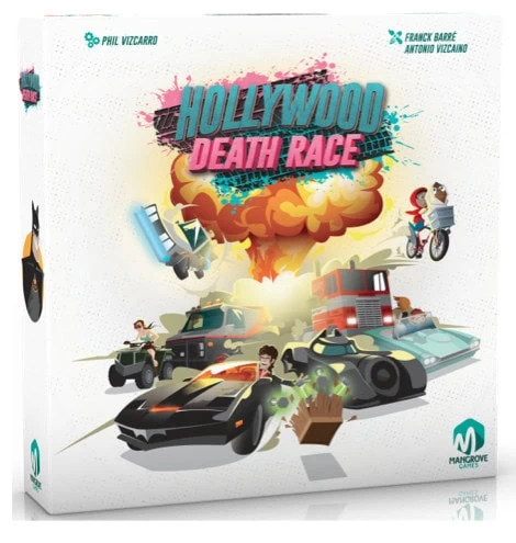 Accueil Jeux Hollywood Death Race, prenez place dans cette course extravagante chez Mangrove Games Hollywood Death Race, prenez place dans cette course extravagante chez Mangrove GamesBenjamin Guimbert·JeuxCritique·17 septembre 2018 à 23h34 Benjamin Guimbert Hollywood Death Race est un jeu de Phil Vizcarro, illustré par Franck Barré et Antonio Vizcaino. De 2 à 6 joueurs, à partir de 8 ans, pour des parties de 45 à 90 minutes en fonction du nombre de joueurs. Édité par Mangrove Games. La Campagne Kickstarter va bientôt débuter : le 2 Octobre 2018. Certaines photos de l’article sont effectuées sur un prototype du jeu de très bonne facture. Le résultat final sera encore plus abouti et des figurines de 32mm viendront agrémenter le plateau en remplacement des personnages en carton. Synopsis : Hollywood Death Race est un jeu de course futuriste. Vous incarnez un sosie et vous participez à des courses endiablées au milieu d’énormes studios de cinéma quasi à l’abandon depuis que toute forme d’art a été bannie. Parcourez différents plateaux de films à la recherche d’Effixium, faites des rencontres improbables et tentez de gagner cette course folle. La mise en place et la prise en main du jeu sont rapides. A vous de construire votre circuit avec les différents plateaux disponibles en y plaçant les éléments correspondant : cubes d’Effixium, caisses Props, Dés de Décompte, points de Vie, etc. Chacun de ces plateaux vous donne le droit de faire des actions inédites comme le plateau Casino Infernal où vous pourrez parier de l’Effixium au risque de le perdre ou au contraire de doubler votre mise. D’autres plateaux comme Jurassic Land vous malmèneront…mais je n’en dirai pas plus mis à part que vous avez du apercevoir cette future figurine. Placez ensuite et en toute logique le plateau départ et arrivée en début et fin de course. Les cartes Props sont mélangées puis placées à proximité du plateau ainsi que les autres éléments du jeu. Elles sont à effet immédiat ou peuvent être conservées et elles vous apporteront bonus ou malus. Vous pourrez en récupérer sur certaines sections du circuit de course. A la fin de votre tour, vous ne pourrez ni en conserver plus de 3 en main, ni en utiliser 2 identiques pendant votre tour. Choisissez chacun une fiche personnage (verso français/recto anglais). Ne dépassez pas les 5 points de Classe autorisés. En fonction du nombre de joueurs la configuration de départ sera différente : . 2 à 4 joueurs, choisissez chacun 2 véhicules . 5 joueurs : 2 équipes de 2 où chaque joueur d’une équipe choisit 1 véhicule et le joueur seul en choisit 2. . 6 joueurs : 3 équipes de 2 joueurs, chaque joueur choisit 1 véhicule. Placez autant de cubes rouges qu’indiqué sur l’emplacement Hit Point de votre fiche personnage, vos points de Vie. Placez également 3 cubes verts d’Effixium dans le/les réservoirs SFX de votre véhicule. Les réservoirs SFX lorsqu’ils sont pleins vous permettent d’utiliser les capacités spéciales de votre véhicule. Il vous faudra alors vous délester des cubes d’Effixium placés dans le réservoir utilisé. Un autre avantage pour chacun de vos véhicules est l’utilisation gratuite de l’atout propre à votre monture. Il y en a 5 : Le Bélier. Poussez le véhicule devant vous jusqu’à ce qu’il rencontre un obstacle.. haha…une voiture otage ^^. Le Saut. Sautez par dessus un maximum de 2 cases reliées pour éviter quelques pièges présents sur le circuit: 1 saut d’une case = 2 déplacements. Le Tout-Terrain. Véhicule passe-partout qui ne ralentit pas sur les terrains accidentés. L’Ultraviolente. Vous pouvez utiliser 2 SFX dans le même tour. Dans ce cas votre véhicule restera sur place. Le Vol, dans les airs. Oui, certains véhicules peuvent voler en dépensant un cube d’Effixium par tour effectué au dessus du circuit. L’utilisation des atouts est gratuite et ne compte donc pas comme une action. A 2 joueurs, vous gérez 3 véhicules fantômes en supplément de votre propre véhicule, histoire de rajouter un peu d’interaction dans votre course folle. Faites franchir la ligne d’arrivée à vos 2 véhicules en 1er pour remporter la course. Comment franchir cette ligne d’arrivée ? Pour ce faire, vous pourrez effectuer 3 actions différentes par tour de jeu parmi les suivantes : Déplacement : Avancez votre véhicule du nombre de cases égal ou inférieur indiqué sur votre fiche personnage en haut à droite. SFX : Utilisez votre SFX (pouvoir) lorsque votre réservoir à SFX est plein et que les conditions nécessaires à son utilisation sont remplies. Bousculer : Voir aussi90%Benjamin GuimbertJeuxCritique 3 septembre 2021 à 08h05Test et avis Les Ruines Perdues de Narak Envoyer le véhicule bousculé d’une case vers l’avant sur une case adjacente à son emplacement. Pour ce faire vous devez vous situer à une case adjacente connectée au véhicule de votre adversaire. Il vous sera possible de faire cette action en cours de déplacement (ou avant/après) mais il vous en coûtera 2 actions. Si il n’y a pas de cases adjacentes libres pour cause d’occupation par un autre véhicule, votre adversaire perd 1 point de Vie. Visez les pièges !!! Klaxonner : A utiliser sur certains plateaux afin de semer le trouble au sein de la course mais que dis-je : le CHAOS. Réparer : A faire en début de tour. Vous ne pourrez d’ailleurs effectuer que cette action. Conséquence logique : refaites le plein de Hit Point. Vous pouvez également utiliser vos cartes PROPS autant que vous le souhaitez mais avec la contrainte d’une seule du même type. Lorsque vous perdez tous vos points de Vie, placez un jeton Crash face visible sous votre véhicule. A votre prochain tour, vous retournez ce jeton pour le placer sur sa face réparation. Logiquement un véhicule craché ou en réparation est « intouchable ». Hollywood Death Race est un jeu de course et d’emb