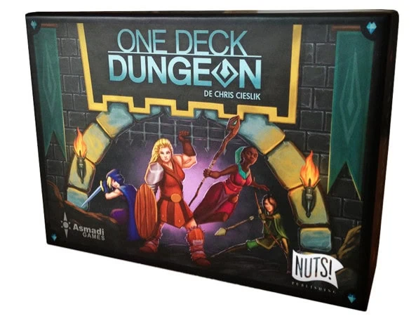 Accueil Jeux One Deck Dungeon, partez à l’assaut du Donjon chez Nuts Publishing One Deck Dungeon, partez à l’assaut du Donjon chez Nuts PublishingBenjamin Guimbert·JeuxCritique·1 octobre 2018 à 19h57 Benjamin Guimbert One Deck Dungeon est un jeu de Chris Cieslik et illustré par Alanna Cervenak et Will Pibtzer. De 1 à 2 joueurs en mode coopératif, à partir de 14 ans, pour des parties de 45 minutes. Édité par Asmadi Games (version originale) et Nuts Publishing (version française). La Campagne Kickstarter a débuté le 17 mai 2016 et s’est terminée 23 jours plus tard. One Deck Dungeon est ce qu’on appelle dans le milieu un Dungeon–crawler, une exploration de Dungeon : Porte – Monstre – Combat –Piège –Trésor. Dés et cartes sont au rendez-vous. Vous incarnez une des 5 Héroïnes de l’univers Médiéval-fantastique : une Mage, une Archère, une Guerrière, Une Paladin et une Rebelle. Comme vous l’avez remarqué, les personnages sont tous féminins, phénomène assez rare dans le monde du jeu de plateau pour être souligné. Vous allez explorer un donjon sur différents niveaux dans le sens de la descente, récupérer des équipements, améliorer vos caractéristiques, avant d’affronter le grand Big Boss final, le Gardien du Donjon. Si une des Héroïnes n’a plus de points de Vie la partie est perdue. Récupérez votre carte Héroïne, vos points de Vie (symbolisés par les cœurs en bois rouge), les dés correspondants aux différentes caractéristiques : Force, Agilité et Magie. Le tout étant indiqué sur votre fiche Personnage. Ne vous trompez pas de côté en fonction du nombre de joueurs pour votre partie. Au fil du jeu, vous pourrez récupérer 1 ou 2 dés Héroïques (noirs), en fonction du nombre de joueurs, si vous remplissez les conditions de votre capacité Héroïque. Le paquet de cartes Rencontre (Monstres) est mélangé puis placé face porte fermée visible sur la surface de jeu. Il représente aussi bien les rencontres que vous ferez dans le Donjon que le temps qui passe. La carte Escaliers est placée sous la pile des cartes Rencontre. Maintenant, piochez au hasard ou choisissez le Donjon et le Boss de fin : Le Gardien parmi les 5 disponibles (plus si vous avez des goodies). Cette carte est glissée sous la fiche de Séquence de Tour de sorte à ne laisser dépasser que le nom du Donjon et le 1er étage visible. Les dés noirs remplacent n’importe quel autre dé. Ils seront disponibles durant la partie sous certaines conditions. En début de partie vous démarrez avec la carte XP de niveau 1 qui vous permet de transporter 1 Objet et 1 Compétence. Vous pourrez changer de niveau lorsque vous accumulerez suffisamment de Lanternes : 6 (Cf. symbole en bas à droite de la carte ci-dessous). Plus vous montez de niveaux plus vous améliorez ces capacités. Tour de Jeu : Après avoir amorcé votre descente dans le Donjon, vous allez devoir dépenser du temps à chaque début de tour. Cette action est symbolisée par le fait de défausser une carte Rencontre par sablier rencontré. Cela commence d’ailleurs dés votre 1er tour comme indiqué en haut de votre fiche Séquence de Tour. Pour le 1er tour, pas le choix, vous allez explorer et donc dépenser 2 unités de temps. Pour ce faire, défaussez 2 cartes Rencontre, elles représentent le temps qui passe puis placez 4 autres cartes face porte fermée sur la surface de jeu. Vous voilà déjà au début du 2ème tour de jeu. Une fois votre exploration effectuée, passez à la rencontre. Cette simple action vous coûtera également 2 temps comme pour tout début de tour. Choisissez 1 des 4 cartes Rencontre puis retournez-la. Vous avez le choix entre effectuer cette rencontre ou fuir. Dès votre 3ème tour de jeu vous aurez le choix entre Explorez ou Entrez. Généralement, vous continuerez un peu à voir ce qui se trouve derrière ces portes encore fermées. Les Rencontres : Maintenant à vous de voir si vous souhaitez faire la Rencontre ou si vous préférez fuir. Une Rencontre peut être soit un combat soit un piège. En cas de combat, vous devez remplir plusieurs cases de Défi de la carte Rencontre mais aussi celles de la carte Donjon, en utilisant les différents résultats de vos dés suite à votre lancer. En priorité, vous devez recouvrir les cases avec le symbole Bouclier avant de vous attaquer aux cases suivantes. Vous pouvez également utiliser le résultat d’un de vos dés pour activer une de vos Compétences, ou encore défausser 2 dés pour récupérer un dé Héroïque d’une valeur égale à la plus petite valeur des 2 dés défaussés. Pour ce faire, vous pouvez placer un dé sur les petits emplacements (1case) de même couleur et d’une valeur supérieure ou égale au nombre inscrit. Pour les emplacements plus larges, vous n’êtes pas limités en nombre de dés. Les dés Héroïques sont des bonus, ils prennent la couleur que vous souhaitez leur donner. Sur cet exemple (Cf. photo ci-dessus), le résultat du lancer a quasi permis de recouvrir toutes les cases. Un joueur a défaussé 2 dés pour prendre un dé Héroïque de valeur 3. Mais une case reste pourtant non recouverte par un dé. Les joueurs subissent donc les conséquences inscrites sur cette case : perdre 1 vie et dépenser 1 temps. A eux de choisir comment répartie ces effets. Vous pouvez ensuite récupérer le Butin : l’XP (les lanternes), L’Objet (dé supplémentaire), la Compétence ou la Potion. A vous de choisir également comment vous allez l’utiliser. Si un des joueurs perd totalement ses points de Vie, il peut utiliser une potion pour se soigner, cas contraire la partie est perdue. Concertant les Rencontres Pièges, vous allez avoir 2 options. Sur l’exemple ci-dessous, si vous choisissez Désenchanter : dépensez 3 temps et si vous ne parvenez pas à faire un total de 8 en Magie, dépensez 3 temps supplémentaires et perdez 2 vies (à repartir entre les joueurs). Ou vous pouvez choisir Esquiv