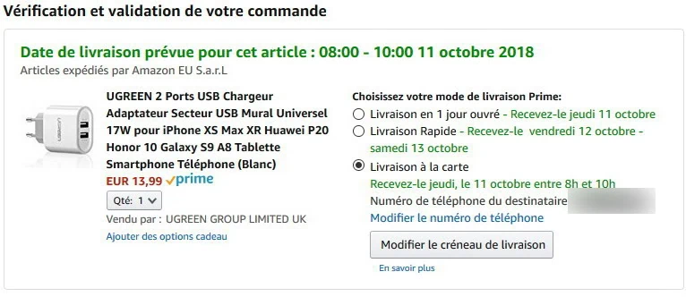 Accueil Bonnes affaires Livraison à la carte chez Amazon Livraison à la carte chez Amazonzast·Bonnes affaires·9 octobre 2018 à 19h03 zast Je viens de découvrir une nouvelle option chez Amazon.fr. En effet, en voulant commander un chargeur usb, j’ai eu comme d’habitude le choix de la livraison prime (je suis client prime) : Livraison 1 jour ouvré (normal) Livraison rapide (normal) Livraison à la carte (nouvelle option sur mon compte) Cette nouvelle option de livraison permet de choisir le jour et le créneau de livraison ! C’est une option qui me manquait et que je trouve génial. On peut enfin décider du jour de livraison. Je ne sais pas si c’est actif pour tous les clients prime, mais moi j’en suis satisfait car je peux enfin décider du jour de livraison. Les offres de livraison Amazon prime