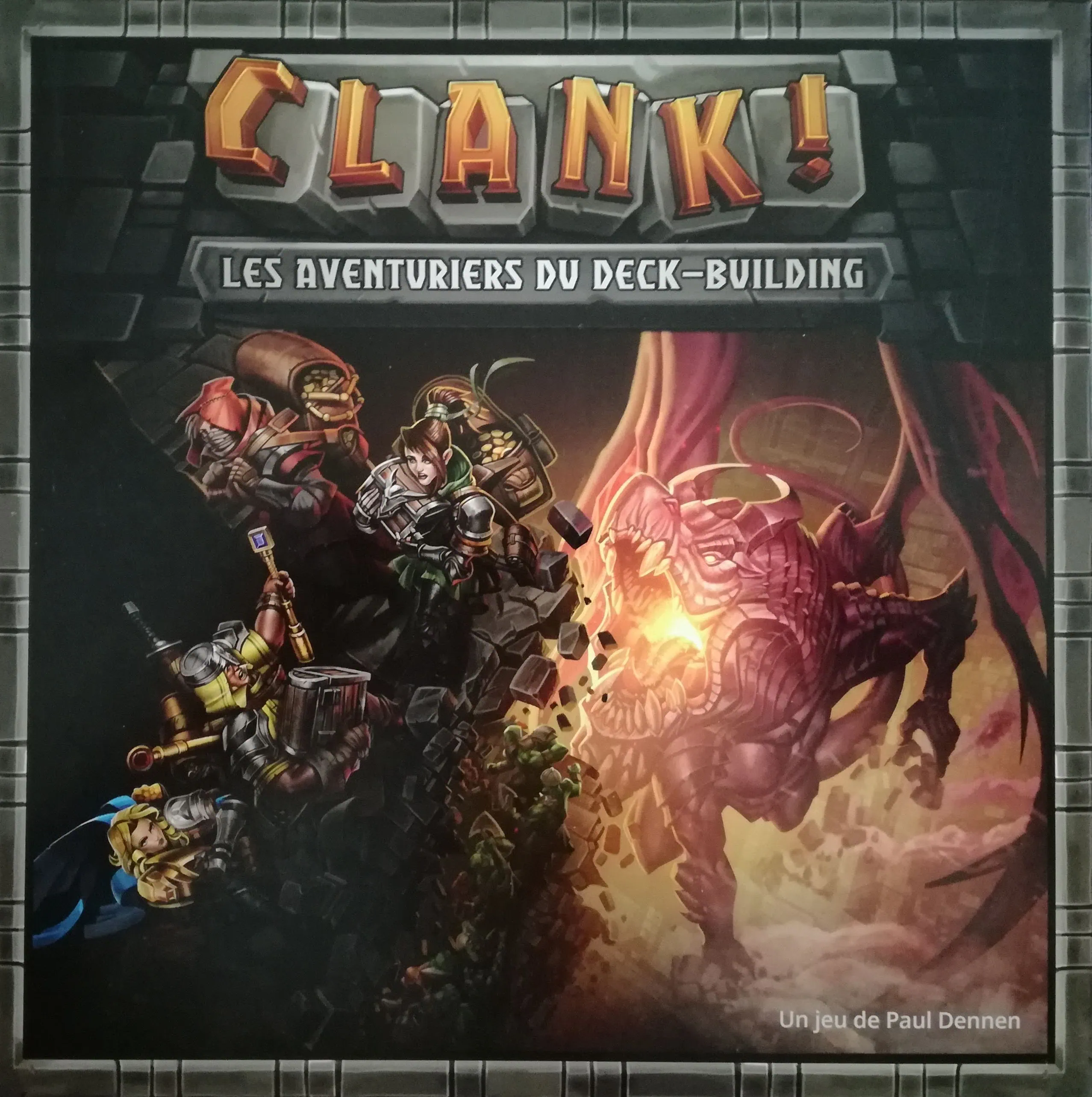 bty Accueil Jeux Clank! oserez-vous descendre dans le donjon de Renegade Game Studios ? Clank! oserez-vous descendre dans le donjon de Renegade Game Studios ?Wolverine·JeuxCritique·21 novembre 2018 à 15h59 Wolverine Clank! Clank! Clank! Clank! .… Clank! est un jeu de deck building créé par Paul Dennen et illustré par Raul Ramos, Rayph Beisner, Ratislav Le, et Derek Herring. Il est édité par Renegade Game Studios. Il est prévu pour 2 à 4 joueurs à partir de 12 ans et les parties durent entre 30 minutes et une heure. Dans Clank!, vous allez devoir vous introduire dans un donjon et descendre jusqu’à son cœur pour trouver un trésor. Mais attention, un dragon veille et est prêt à en découdre avec votre groupe. Clank! étant le bruit quand on marche avec son armure, on comprend donc vite qu’il va falloir essayer d’être le plus discret possible…. Et il va falloir aussi coopérer afin de pouvoir vaincre le monstre. Mais la coopération sera certainement de courte durée pour ceux qui veulent gagner et ne pas partager la fameuse récompense…. Mise en place L’originalité de ce deck building est qu’il est doté d’un plateau de jeu! Sur l’une des faces, vous allez jouer de jour et sur l’autre de nuit pour diversifier un peu les règles et monter en niveau. Sur ce plateau, vous allez commencer par installer des artefacts et pour ce faire, rien de compliqué puisqu’ils possèdent tous un numéro unique. Placez ensuite les secrets majeurs et mineurs sur leurs emplacement respectifs mais mélangez les bien avant. On place ensuite les jetons carrés sur le marché comme expliqué dans les règles. Chacun choisi sa couleur et place son personnage à l’entrée du donjon. Les cartes sont divisées en 3 catégories. Chacun prend son deck de départ composé de 10 cartes (les grises). Les cartes mercenaire, explorer, livre des secrets et Gobelin seront disposées à coté du plateau tandis que les autres seront mélangées pour faire la pioche. On révèle alors les 6 premières cartes (hormis les cartes dragon qui seront défaussées car elles ne doivent pas être là au départ). Apres cela, comme toujours dans ce genre de jeu, on va devoir utiliser des cartes pour en acheter des nouvelles plus intéressantes. Attention, certaines cartes vont lancer des attaques du dragons assez fulgurantes et la course aux artefacts risque d’être rude. Il va donc falloir bien réfléchir avant de décider quoi faire avec ses cartes….. bty Et le visuel ? En ce qui concerne les cartes, elles sont très bien réussies. Les dessins représentent bien ce qu’il en est et les effets de chacune. Les personnages possèdent un meeple sympathique et le dragon l’est tout autant. Et pour ranger le tout, un sac d’excellente qualité et là on se dit qu’on en a vraiment pour son argent! Le plateau recto-verso est tout autant réussi et au final, on a donc un produit visuellement au top. Que demander de mieux! Verdict Le deck building est très à la mode ces derniers temps. Clank! diffère du fait de sa partie jeu de plateau. Il fallait effectivement penser à mélanger les deux genre et nous donner un jeu original à souhait. Les extensions arrivent à grand pas (et même de nouvelles boites de jeu en stand alone) pour ce succès du genre et on à hâte de pouvoir les découvrir également! Un jeu extremement captivant aussi bien pour les platoïstes que pour les deck builders! On en redemande encore, bravo à Renegade Game Studios pour cet excellent jeu qui sort des sentiers battus.