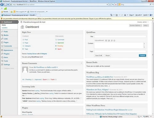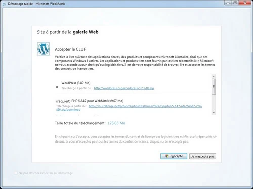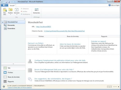 Accueil Critique Review WebMatrix de Microsoft Review WebMatrix de Microsoftzast·CritiqueGeekLogicieltuto·28 novembre 2011 à 20h17 zast Je vous propose un avis (review) sur Webmatrix de Microsoft. Cette application ressemble fonctionnellement à un mélange de Softaculous et Easyphp. En effet, Webmatrix vous permettra d’installer des blogs comme WordPress, des CMS comme Joomla, des plateformes eCommerce, des forums, des Galeries, des Wiki et des outils. L’application vous simplifiera toutes les manipulations en installant même votre base de données comme Mysql. Il faut noter que Microsoft propose gratuitement Webmatrix. Afin de vous présenter le logiciel, je vais faire un test à la manière d’un tutorial et qui pourra de plus vous aider à installer WordPress pour Webmatrix. En cliquant sur site à partir de la galerie web, on peut voir ce que l’on peut installer. On peut aussi installer un site à partir d’un modèle Pour mon test je vais installer WordPress à partir de la galerie web. Tout de suite le logiciel s’aperçoit que je n’ai pas MySQL d’installer et propose de le faire pour moi. J’ai le choix de le faire ou d’utiliser un serveur distant. Webmatrix me propose de configurer MySQL Ensuite je dois valider toutes les applications à installer dont PHP 5.2.17 avant qu’il aille les télécharger. Il s’occupe même de faire un connecteur MySQL vers .Net. L’installateur va downloader tous les composants en ligne. Il suffit ensuite de renseigner les identifiants que vous désirez pour l’installation de votre BDD (base de données). Lorsque Webmatrix a installé toutes les applications, il vous indique si l’opération s’est bien déroulée. On arrive ensuite sur l’interface de Webmatrix Maintenant je passe à la configuration de WordPress La configuration de WordPress est finie Voir aussi80%Benjamin GuimbertCritiqueJeux 8 septembre 2025 à 09h51Test et avis de Resurgence Et je peux maintenant me connecter WebMatrix permet aussi d’analyser ce qui se déroule un peu comme les logs d’apache Bien entendu vous pouvez voir tous les fichiers du serveur Je dois avouer que j’ai été très impressionné par les fonctionnalités de WebMatrix que j’ai découvert en me rendant sur le site de Microsoft. Il permet de faire beaucoup de chose sans s’épuiser à passer du temps sur la configuration. Il s’intègre avec Visual Studio pour le Workflow, … Ce nouvel outil de développement Web dispose d’un vaste choix de CMS et blogs. Je suis heureux de voir que Microsoft s’ouvre de manière gratuite à ces logiciels. Il permet à un maximum de personnes de gérer un site web de A à Z via WebMatrix. Bien entendu, il faut posséder une machine (serveur) sous Windows pour exploiter ce logiciel. Si vous avez une machine dédié sur Internet (via un hébergeur) il y a de fortes chances que vous ne pourrez pas utiliser cette solution car votre serveur sera sous Linux. Par contre si vous êtes une entreprise et que vous désirez un Intranet ou Extranet ou si vous pouvez faire héberger votre site sous un OS Windows, je pense que WebMatrix sera le choix idéal. Le site officiel : http://www.microsoft.com/web/webmatrix/