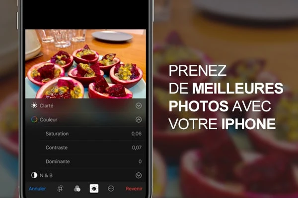 Accueil tuto Tuto Prenez des photos professionnelles avec votre iPhone Tuto Prenez des photos professionnelles avec votre iPhonezast·tutoPhotographie·24 février 2019 à 12h11 zast Aujourd’hui on s’intéresse aux utilisateurs d’iPhones. Vous aimeriez apprendre à faire de jolies photos ? En partenariat avec Tuto.com, voici une formation en vidéo dans laquelle vous apprendrez à sublimer vos photos grâce à quelques astuces et à une méthodologie à mettre en place. À qui s’adresse ce cours ? Pour suivre ce tuto Photo dans les meilleures conditions, vous l’aurez compris il est nécessaire de posséder un iPhone 🙂 Hormis ce pré-requis, tout vous sera expliqué dans ce cours en vidéo. Le programme en détail Durant 1h40 de formation, vous verrez comment passer au niveau supérieur avec au programme :Voir aussizastPhotographie 8 juin 2012 à 19h56Canon EOS 650D (EOS Rebel T4i) et la vidéo Une présentation de la photographie sur iPhone La maîtrise de l’app Appareil Photo Les bases d’un bon cliché avec un iPhone L’amélioration des photos en les éditant depuis son iPhone Vous serez alors apte à améliorer vos photos en les éditant manuellement avant de les publier sur les réseaux sociaux. Editer ses photos avec l’app Photos Découvrez à présent, une vidéo offerte par Tuto.com dans laquelle vous apprendrez à éditer vos photographies grâce à l’application Photos directement présente sur iPhone.