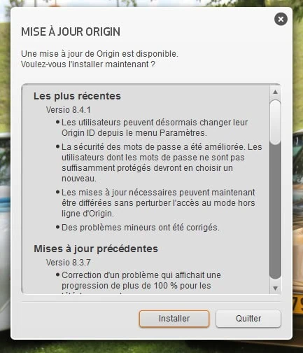 Origin se met encore à jour en version 8.4.1. Si vous désirez utiliser Battlefield 3, il faudra faire cette mise à jour.