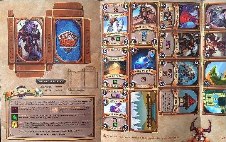 Accueil Jeux Deck 3 et 4 Clash Of Deck Benjamin Guimbert Auteur :Léandre ProustEditeur :Grammes EdtionNombre de Joueuses / Joueurs :2Thèmes :Cartes, JCE, affrontementNotre score80 2 nouvelles Extensions (N°3 et 4) viennent compléter le JCE Clash Of Deck de Léandre Proust Chez Grammes Edition. Le principe est identique au 2 précédents decks, démarrez par une session de découpage puis de pliage pour le montage de la boîte avant de démarrer votre partie. De nouvelles capacités tel que Mercenaire qui permet à unité détruite de retourner dans l’extrémité droite de la main de son adversaire et non la sienne ou encore Vulnérabilité qui fait directement tomber à 1 les points de Vie de votre adversaire, et Second Souffle qui comme son nom l’indique permet à votre unité de ne pas retourner dans votre main lorsqu’elle est détruite, elle reste en jeu pivotée à 180°. Affrontez-vous de part et d’autre des 2 ponts et protégez au mieux votre Tour de Guet/Château Fort pour tenter de remporter la partie. Cliquez ici pour être dirigé/ée vers la review complète : https://paradoxetemporel.fr/22617-test-de-clash-of-deck.html Un jeu à découper pour 3 euros que vous pouvez aisément ajouter à votre commande internet chez Philibert.Voir aussi85%Benjamin GuimbertCritiqueJeux 10 septembre 2025 à 09h29Test et avis de Rollword Belles parties à Vous !!! Article de Benjamin Guimbert Points positifsPoints négatifs80