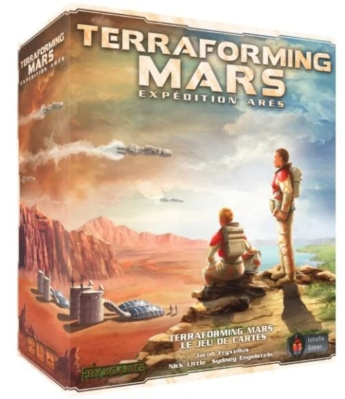 Accueil Critique Test et avis de Terraforming Mars Expédition Arès Benjamin Guimbert Auteurs : Jacob Fryxelius, Nick Little et Sydney EngelsteinEditeurs : FryxGames / IntrafinNombre de joueuses / joueurs :1 à 4Thèmes : Cartes, gestion, planification, simultanée, Terraforming Mars Expédition ArèsNotre score90 Test et avis de Terraforming Mars Expédition Arès de Jacob Fryxelius, Nick Little et Sydney Engelstein chez Intrafin Terraforming Mars Expédition Arès est un jeu de Jacob Fryxelius, Nick Little et Sydney Engelstein, illustré par Bill Bricker, Garret Kaida, Nio Mendoza, Andrei Stef, Naomi Robinson et Justine Nortjé. De 1 à 4 joueurs/joueuses à partir de 14 ans pour des parties de 60 minutes. Édité par FryxGames, localisé et distribué par Intrafin. Disponible depuis janvier 2022. La campagne de financement participatif s’est déroulée du 16 février au 5 mars 2021 sur la plateforme Kickstarter. Un gros succès, quasi 17 000 contributeurs/contributrices ont réuni plus d’1,2 millions de dollars. Synopsis : 2315, il est temps de partir sur Mars pour fonder un nouveau foyer pour l’humanité. De grandes corporations vont financer la recherche, le développement de ce grand projet, celui de terraformer la planète rouge dans le but de la rendre habitable. Lors de la mise en place choisissez-en une suite aux 2 cartes corporation distribuées aléatoirement et secrètement à chaque joueuse/joueur. Après avoir récupéré vos ressources de départ et 8 cartes Projets, mettez tout en œuvre pour développer au mieux votre mission : Augmenter le niveau d’Oxygène et de Chaleur, et de révéler (créer ?:-)) des Océans pour créer des conditions de vie semblables à celles de la Terre. Pour chacune de vos participations à ce projet gagnez un Niveau de Terraformation (NT), soit de points de Victoire. Ils se traduisent également en MégaCrédit lorsque la phase de Production est jouée. Lorsque les 3 objectifs (votre missions) sont atteints la partie prend fin. Celle/celui avec le plus de points de Victoire gagne. A votre tour : 1 Manche est divisée en 3 phases : 1) Étape de Planification, Simultanément et secrètement, choisissez une carte Phase de votre main et placez-la face cachée devant vous. A partir de la 2ème manche placez la carte Phase par-dessus la carte jouée lors de la manche précédente car vous ne pouvez pas jouer 2 fois d’affiler la même carte. Lorsque tout le monde est prêt, révélez vos cartes simultanément puis retournez les tuiles Phase correspondantes. 2) Étape de Résolution des phases, Résolvez, toutes et tous, les phases choisies en démarrant par celle de plus faible valeur puis dans l’ordre croissant. Si une phase est choisie plusieurs fois elle ne sera résolue qu’une seule fois. Recevez le Bonus de phase en cours lorsque vous l’avez choisie. Lorsque la Phase choisie vous permet de jouer une carte de votre main il vous faut pouvoir payer le coût en Mégacrédits (MC) en les prenant dans la zone MC de votre plateau Joueur/Joueuse. Quand vous le souhaitez, vous pouvez défausser des cartes de votre main pour gagner des MC : 3MC/carte. Petite parenthèse, les boites de rangement sont plus que pratique pour la mise en place et durant la partie. Certaines cartes Projet demandent des prérequis pour pouvoir être jouées comme celui d’avoir atteint un certain niveau d’Oxygène ou de Température. Bénéficiez de réduction en fonction de votre niveau de production en Acier et en Titane pour les cartes ayant respectivement le badge Construction et le badge Espace. En jouant la carte Phase Action (Cf. photo ci-dessus) vous pouvez jouer la capacité Action, 1 seule fois, de chacune de vos cartes jouées et autant d’actions standards (Cf. photo ci-dessous, partie inférieure de votre plateau Joueur/Joueuse) que souhaité. 20 MC ou 8 Plantes pour construire une Forêt pour augmenter le niveau d’Oxygène et gagnez 1 Niveau de Terraformation (NT), 14 MC ou 8 Chaleurs pour augmenter la Température et gagnez 1 NT, 15 MC pour révéler une tuile Océan et récupérez les ressources indiquées sur la tuile et gagnez 1 NT. Si vous faites le choix de « construire » une Forêt, récupérez un jeton PV Forêt, augmentez le niveau d’Oxygène d’un cran et gagnez 1 NT. 3) Étape de Fin de Manche A la fin de la manche, veillez à n’avoir que 10 cartes en mains. Si vous en défaussez, gagnez 3 MC par carte défaussée. Fin de partie : Lorsque les 3 conditions suivantes sont atteintes la partie se termine : 9 tuiles Océan découvertesTempérature à +8°COxygène à 14%Voir aussizastCritiqueSecurité 20 juillet 2025 à 10h44Test de la Blink outdoor 4 Terminez alors la phase en cours (pas la manche) avant de le décompte final : 1 points de Victoire par NT + Pv jetons Forêt + Pv sur vos cartes Projet jouées. Celui/celle qui a le plus de points de Victoire remporte la partie. Si égalité celle/celui avec le plus de Chaleur, MC et plantes gagne. Un mode Solo et un mode coopératif pour 2 joueurs/joueuses sont également proposés. Je n’ai pas encore jouer le mode coop, je le ferai prochainement 🙂 Conclusion : Terraforming Mars Expédition Arès est un jeu de de cartes, de gestion de main et de ressources, de développement et d’engine-building (construction de moteur). Le jeu est bien un stand alone, certes inspiré de Terraforming Mars son grand frère mais nul besoin de lui pour pouvoir jouer à Expédition Arès. Il est plus accessible que son ainé, une porte d’entrée pour ensuite plonger dans le fabuleux TM. La nouveauté réside surtout sur les cartes Phase, emprunté à la mécanique principale de Race For The Galaxie (carte phase et bonus) pour celle et ceux qui connaissent le jeu. Le hasard de la pioche est bien sûr présent et peut déplaire à celles et ceux qui souhaiteraient avoir le contrôle total de leur partie. Pour les joueurs/joueuses ayant déjà apprivoisé Terraforming Mars vous y retrouverez l
