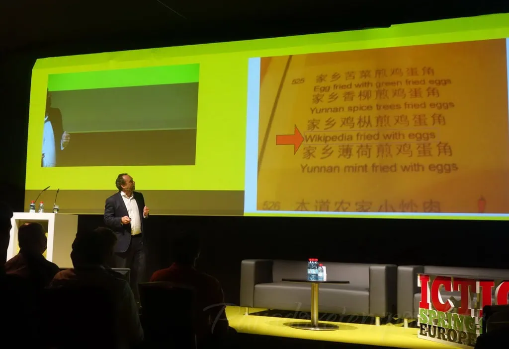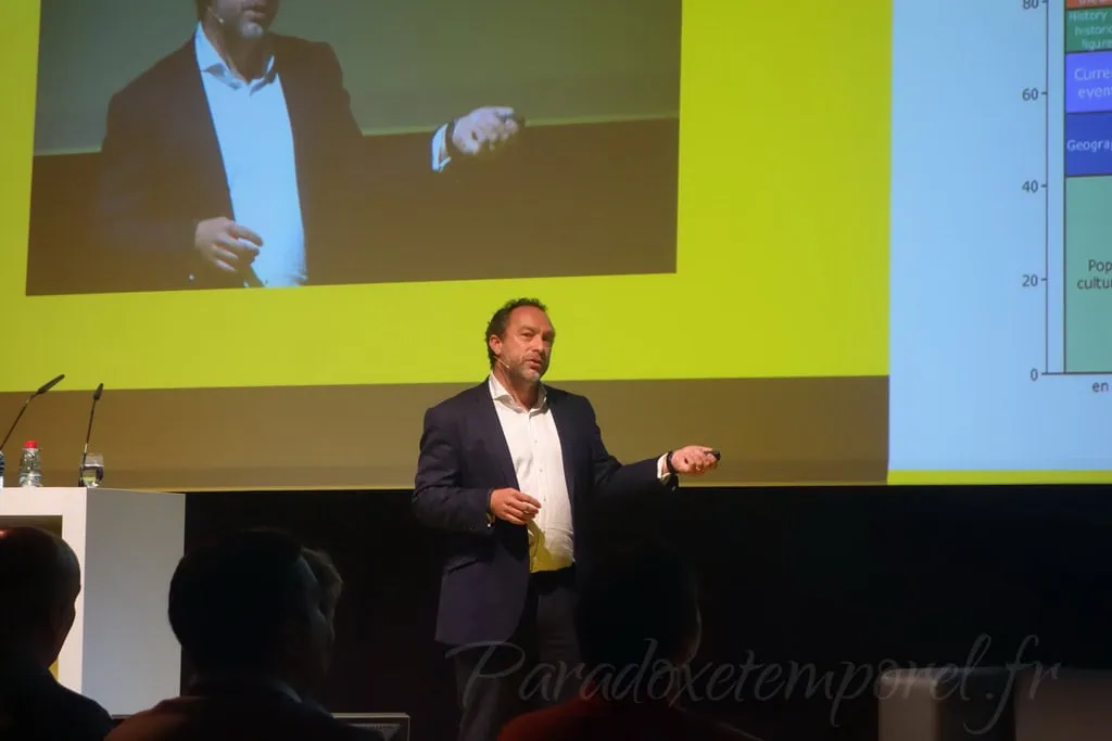 Accueil Interview Jimmy Wales créateur de Wikipedia à l’ICT Spring 2013 Jimmy Wales créateur de Wikipedia à l’ICT Spring 2013zast·InterviewPhotographieScience·30 juin 2013 à 21h06 zast Comme vous le savez déjà, le 20 juin 2013, Jimmy Wales créateur de Wikipedia était présent à l’ICT Spring 2013 de Luxembourg pour nous parler de la démocratie et internet (Democracy and the Internet). Son discours était très intéressant surtout pour les personnes qui ont connu les débuts d’internet pour le grand public ou encore les encyclopédies en papier ;). Jimmy Wales ne s’est pas contenté de donner des chiffres comme ses 516 millions de visiteurs unique au mois de mai 2013 sur Wikipédia mais il a plutôt fait passer un message sur la transmission des informations et souvent il a joué sur l’humour pour passionner son public (et il a réussi). Pourtant comme il le dit, il utilise tous les jours un téléphone google (voir photo) et c’est assez comique vu l’affaire PRISM.Voir aussizastPhotographie 8 juin 2012 à 19h56Canon EOS 650D (EOS Rebel T4i) et la vidéo Des extraits vidéos de la conférence de Jimmy Wales (que j’ai mis en creative commons) sur la démocratie et internet et en dessous vous trouverez quelques photos : Quelques photos de Jimmy Wales créateur de Wikipedia pendant l’ICT Spring Luxembourg 2013