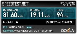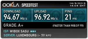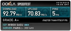 Accueil Critique Avis sur la fibre optique et le fournisseur d’accès Wibox Avis sur la fibre optique et le fournisseur d’accès Wiboxzast·CritiqueGeekHardwareJeux·15 septembre 2013 à 18h22 zast Maj : 03/02/2017 : En fin d’article, l’interface de configuration Voici un petit avis sur la fibre optique et le fournisseur d’accès Wibox. Tout d’abord j’ai attendu plus de 2 mois avant de donner mon avis pour être certain de ne pas me tromper. J’ai donc gardé ma connexion ADSL et j’ai pris la fibre afin de pouvoir faire mon choix (voir d’ailleurs la photo ci-dessus). Le choix du prestataire pour un accès en Réseau Très Haut Débit en fibre optique (FTTH) était limité à ceux disponibles par l’offre Fibre de la Communauté de Communes de Maizières-lès-Metz via la société Resoptic. Aucun des très gros FAI (Fournisseur d’accès Internet) n’était listé et je dois dire que j’étais déçu. Je dois avouer que cela fait assez « peur au départ ». En effet, cela fait plus de 16 ans que je suis sur Internet et j’ai connu les premiers petits FAI à l’époque où je devais me connecter via un modem RTC. Ces petits FAI négligeaient bien souvent la qualité des services (problème de vitesse, support inexistant,…). L’unité de mesure à l’époque pour la vitesse était des bauds ou en kb/s ;). Vous pourrez d’ailleurs voir plus bas les vitesses théoriques. Ensuite l’ADSL arriva avec les gros FAI que nous connaissons (Orange, SFR, Free et Bouygues). Même si des problèmes de connexion puissent arriver, le client sait qu’il y a une grosse structure derrière et c’est rassurant. Cela fait maintenant plus de 10 ans que j’utilise chaque jour l’ADSL et j’en suis satisfait. Comme vous le savez peut être, la fibre demande des petites modifications. Mais j’ai tout de même contacté les différents prestataires de ma régie. La société qui m’a le plus renseigné par mail ou par téléphone c’était Wibox. Je dois dire que j’avais ma liste de questions et je ne me suis pas privé de leur en poser plein. Et j’ai toujours reçu des réponses. J’ai même été surpris lorsque j’ai sorti le terme WAF (Wife Acceptance Factor ) lors d’une discussion au sujet de la TV et que mon interlocuteur comprenait ce que je disais 🙂 Toutefois, certains points m’ont fait patienter avant de me lancer à tester la fibre : – Les travaux à effectuer -Perte (pour l’instant) de certaines fonctionnalités des BOX internet comme les options TV avancées. Ce que j’ai su grâce au support Wibox, c’est qu’il était possible de garder mon offre ADSL et de pouvoir passer à la fibre en même temps. Les travaux de raccordement à la fibre étant gratuits pendant quelques mois ainsi qu’une offre de 3 mois sans frais pour tester la fibre m’ont donc décidé à tester cette solution. Après avoir donné mon accord, le prestataire qui installe la fibre m’a contacté pour faire le raccordement. Les délais ont été rapides car j’ai pu avoir l’installation en moins de 2 semaines. Comme vous pouvez le voir sur ces photos, un câble est tiré de l’extérieur vers ma maison. Ensuite un câble a été passé du garage vers le deuxième étage. Du garage Au bureau Un boiter fibre a été branché dans le bureau pour connecter la fibre. Le travail a été très bien fait. A peine parti le prestataire a contacté Wibox afin que le routeur Wibox soit envoyé. En effet à ce moment là, je ne pouvais pas encore me connecter à la fibre. Quelques jours plus tard, la box arriva et j’ai enfin pu tester la fibre. Voici quelques tests de débits théoriques. J’ai comparé ma connexion ADSL à ma connexion fibre vu que je dispose des 2 pour l’instant. Ce sont des valeurs que vous n’atteindrez pas car tout dépend de l’endroit où se trouve le fichier, des débits du serveur, … : ADSL Ci dessous la fibre sur le même serveur Test maintenant vers les USA ADSL et ci dessous la Fibre Voici d’autres mesures : Au niveau des jeux , on peut aussi noter que le ping est vraiment impeccable. Je me suis connecté sur un serveur 32 joueurs Battlefield 3. Comme vous le savez peut être le ping est très important lorsque l’on joue : Voici une capture lorsque j’ai envoyé une vidéo sur Youtube : Ci dessus en ADSL (+ de 87 minutes) et ci dessous en Fibre (- de 4 minutes) pour une vidéo de 520 Mo Maintenant je passe plus de temps à encoder la vidéo sur mon PC (core I7 + 16 go de Ram) que pour uploader ma vidéo sur internet 🙂 Au niveau de la navigation sur Internet, j’avoue qu’on ne voit pas trop de différence mais c’est normal vu le poids d’une page web. Cependant on prend vite l’habitude de la fibre et cette différence devient vite perceptible dès que l’on surf via l’ADSL. L’autre avantage c’est de faire plusieurs choses en même temps sans se préoccuper de la bande passante (par exemple lire une vidéo en HD sur youtube, surfer en même temps et uploader une vidéo sur Dailymotion). J’ai pu faire (et j’en fais toujours) plusieurs tests car mes appareils en wifi ont accès à ma Neufbox et à ma box Wibox. Lorsque je mets à jour les applications sur l’Applestore j’avoue que c’est le jour et la nuit au niveau vitesse entre l’ADSL et la fibre. Les mises à jour de Windows sont maintenant très rapides et c’est pareil pour tout (si le serveur de l’autre côté accepte des gros débits 🙂 ). Pour l’instant le seul problème que je vois c’est au niveau de la TV. En effet pour avoir le replay tv et CanalSat, il faut utiliser une tablette, un PC ou le satellite car la Wibox TV Révélation ne permet pour l’instant de lire ces chaines (sans doute à cause d’accord avec le groupe Canal+). Toutefois Wibox propose des offres préférentielles si l’on veut avoir Canal+ et CanalSat par Satellite. Mais cette situation est temporaire car des améliorations de la box TV sont à venir avant la fin de l’an