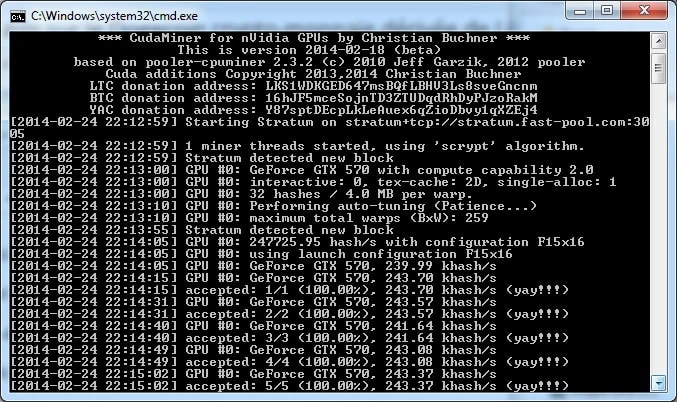 Accueil tuto Tuto et avis sur la création de Dogecoin la crypto-monnaie dérivée du Litecoin et du Bitcoin Tuto et avis sur la création de Dogecoin la crypto-monnaie dérivée du Litecoin et du Bitcoinzast·tuto·24 février 2014 à 22h52 zast J’ai beaucoup entendu parler de crypto-monnaie et principalement du Bitcoin. Je connais d’ailleurs une personne qui a investi dans une machine de minning (calcul de la crypto-monnaie) pour produire du Litecoin et du Dogecoin (crée par Jackson Palmer et Billy Markus). Samedi 22 février 2014, suite à un petit commentaire sur twitter avec Korben, je me suis décidé de miner pendant 1 heure pour voir comment cela fonctionne et en comprendre le principe. Vu que cela ne coute rien à part de l’électricité, j’ai donc testé le minning. Je vais juste vous expliquer et vous aider à faire du Dogecoin. Attention il est possible d’endommager votre PC si vous essayez de faire de la crypto-monnaie car votre carte graphique peut surchauffer. Attention de mauvais paramètres peuvent endommager votre PC !!! Je ne suis pas responsable de vos manipulations. Le matériel nécessaire : – Votre PC – Un logiciel de portefeuille ou portefeuille virtuel (Wallet). Personnellement j’ai pris celui disponible sur http://dogecoin.com (Dogecoin 1.5.2.0 pour windows) – Un logiciel pour pouvoir miner avec ma carte graphique nvidia qui s’appelle CUDAMINER (https://bitcointalk.org/index.php?topic=167229.0) ou CGMINER si vous avez une carte ATI/AMD (https://bitcointalk.org/index.php?topic=28402.0). Je vous envois vers ces 2 posts dans un forum car vous pourrez trouver les dernières versions des logiciels et aussi vous renseigner. Pour installer Dogecoin 1.5.2.0 c’est un setup et il suffit de faire next 🙂 Si vous lancer le logiciel, il faudra patienter plusieurs dizaines de minutes pour qu’il se synchronise avec le réseau la première fois Pour CudaMiner, il suffit de décompresser l’archive et ensuite il suffit de copier les fichiers de cudaminer.exe, pthreadVC2.dll et cudart64_55.dll dans le répertoire de votre Wallet Il faut trouver un pool. Il en existe pleins. Voici un site qui tient une liste à jour : http://www.doktorrf.com/dogecoin/pools.html Personnellement, j’ai pris celui qui est conseillé partout car je ne voulais que faire un test : https://fast-pool.com/ Sur fast-pool.com il faut s’inscrire (il ne faudra pas oublier le paiement adresse 😉 ) Il faut maintenant créer un worker Maintenant il faut faire un fichier .bat pour pouvoir miner. Prenez le bloc-notes et copier cette ligne cudaminer -d VOTRECARTEGRAPHIQUE -l auto-C 2 -i 0 -o stratum+tcp://MONPOOL:MONPORT -O MONWORKERNAME:MONPASSWORD Par exemple dans mon cas avec ma carte graphique nvidia : cudaminer -d gtx570 -l auto -C 2 -i 0 -o stratum+tcp://stratum.fast-pool.com:3005 -O jenediraipasmon:jenedonnepasmonpass Il faut sauvegarder le fichier avec le nom que vous voulez (par exemple test.bat) Dans la documentation de cudaminer il est expliqué tous les paramètres que vous pouvez utiliser. Attention de mauvais paramètres peuvent endommager votre PC !!! Je ne suis pas responsable de vos manipulations. Vous pouvez voir ce que pourra générer votre carte graphique sur ce site : https://litecoin.info/Mining_hardware_comparison Ensuite il suffit de lancer le fichier bat Vous êtes en train de miner maintenant 🙂Voir aussizasttuto 28 septembre 2025 à 19h37Tuto Installation de Steam Link sur Amazon Fire TV Ensuite vous irez sur le site de pool, et vous verrez par exemple au bout d’une heure : La synchro avec le Wallet local n’est pas en direct (dans mon cas). Je n’avais pendant un moment aucune transaction. Puis ensuite j’ai eu : Comme vous pouvez le voir c’est facile de faire de la crypto-monnaie comme le Dogecoin (vous pouvez oublier le Bitcoin car il faut maintenant de très grosses machines pour en produire). Personnellement ce n’était qu’un test que j’ai fait et que j’ai voulu partager avec vous. Je n’ai pas poussé plus loin l’expérience et je ne laisserai pas mon pc tourner 24h/24. J’ai sans doute fait quelques erreurs car je ne suis pas un spécialiste dans le domaine mais cela vous donnera peut être envie de plonger dans l’aventure :). Je pense que si vous voulez faire cela il faut s’équiper avec de bonnes cartes graphiques et faire cela sur une machine dédiée. Mais n’oubliez pas que c’est virtuelle et qu’il est possible de tout perdre !!! Dans tous les cas, ce sont les premiers « mineurs » qui gagneront sans doute le plus alors que les autres auront de plus en plus de mal à générer de la crypto monnaie … Si vraiment vous voulez vous lancer dans l’aventure, voici le site officiel du Dogecoin (ils ont une très bonne vidéo de présentation) : http://dogecoin.com/get-started Il y a aussi pleins de sites internet qui parleront beaucoup mieux que moi de crypto-monnaie que vous pourrez retrouver en faisant une petite recherche sur Google.