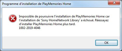 Accueil Logiciel Erreur Sony home network library lors de l’installation de PlayMemories Home Erreur Sony home network library lors de l’installation de PlayMemories Homezast·Logicieltuto·2 septembre 2014 à 10h42 zast Lors de l’installation du logiciel de montage PlayMemories Home pour ma cam sport Sony HDR-AS100V, j’ai eu le message d’erreur suivant : Impossible de poursuivre l’installation de PlayMemories Home car l’installation de Sony home network library a échoué. Réessayez d’installer PlayMemories Home plus tard. 1002-2019-4046 Je dois dire que je n’ai trouvé aucune solution sur internet … Mais coïncidence veut que c’est lié au problème que j’avais aussi pour l’installation de sketch manager dont je vous avais parlé (donc problème Microsoft Fixit 50842) !!!Voir aussizastLogiciel 10 octobre 2021 à 19h15Antidote 10 v6.3 Maintenant PlayMemories Home s’installe correctement et fonctionne correctement :).