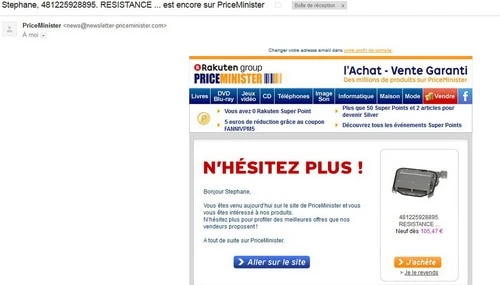 Accueil Securité Les sites de ventes en lignes vous suivent et vous poursuivent… Les sites de ventes en lignes vous suivent et vous poursuivent…zast·Securité·18 octobre 2014 à 18h17 zast Dimanche matin 12 octobre, je recherche une pièce bien spécifique pour un sèche linge (une résistance Whirlpool 2X1300W pour être précis). Je fais comme d’habitude, je recherche via google. Je tombe sur Amazon, … et Priceminister. Sur ce dernier je ne suis pas connecté. Je continue à naviguer de site en site et quelques minutes plus tard, j’ai la surprise de recevoir ce mail de Priceminister ! Bonjour Stephane, Vous êtes venu aujourd’hui sur le site de PriceMinister et vous vous êtes intéressé à nos produits. N’hésitez plus pour profiter des meilleures offres que nos vendeurs proposent !(Voir capture) C’est incroyable d’être fiché à ce point !!!! Est ce vraiment légal de ne pas être connecté sur un site et d’être suivi à ce point ?Voir aussizastSecurité 9 septembre 2025 à 20h41Plex victime d’un incident de sécurité : données utilisateurs compromises, réinitialisation obligatoire Cela donne envie de passer en mode « inprivate » sur son navigateur, voir en VPN à chaque fois que l’on fait une recherche sur le net 🙁 C’était juste un coup de gueule contre ces sociétés qui suivent ce que l’on fait sur Internet …