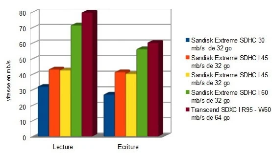 Accueil Critique Comparatif des vitesses des cartes mémoires SD Sandisk et Transcend Comparatif des vitesses des cartes mémoires SD Sandisk et Transcendzast·CritiquePhotographie·1 décembre 2014 à 17h55 zast Depuis plusieurs années j’utilise des cartes SD. Récemment j’ai acheté un canon eos 7D mark II, je dois faire un peu plus attention à la vitesse de ces cartes SD afin de pouvoir tenir en rafales de photos :). Personnellement jusqu’à aujourd’hui je n’achetais qu’une marque (Sandisk). La semaine dernière j’ai testé une nouvelle marque (Transcend). J’ai donc décidé de comparer les vitesses de ces cartes. Pour ce comparatif, j’ai utilisé en carte SD : – Sandisk Extreme SDHC 30 mb/s de 32 go (Sandisk – Carte mémoire eXtreme III SD – 32 Go). Carte achetée le 4 octobre 2010 à 139 EUR – Sandisk Extreme SDHC I 45 mb/s de 32 go – Sandisk Extreme SDHC I 45 mb/s de 32 go (SanDisk SDSDX-032G-X46 Carte mémoire SDHC HD Video Extreme classe 10 45 Mo/sec 32 Go). Carte achetée le 20 décembre 2013 à 29,31 EUR – Sandisk Extreme SDHC I 60 mb/s de 32 go (SanDisk Extreme 32 Go Carte mémoire SDHC 60 Mo/s Classe 10 U3 SDSDXN-032G-FFP). Carte achetée le 19 novembre 2014 à 32,58 EUR – Transcend SDXC I R95 – W60 mb/s de 64 go (Transcend 64 Go Carte mémoire SDXC UHS-I TS64GSDU3) . Carte achetée le 27 novembre 2014 à 41,99 EUR Voici les résultats théoriques via CrystalDiskMark : Sandisk Extreme SDHC 30 mb/s de 32 go Lecture 32.32 mb/s Ecriture 27.28 mb/s Sandisk Extreme SDHC I 45 mb/s de 32 go Lecture 43.42 mb/s Ecriture 41.67 mb/s Sandisk Extreme SDHC I 45 mb/s de 32 go Lecture 42.81 mb/s Ecriture 40.55 mb/s Sandisk Extreme SDHC I 60 mb/s de 32 go Lecture 71.71 mb/sVoir aussi95%Benjamin GuimbertCritiqueJeux 29 septembre 2025 à 13h19Test et avis de Gygès Ecriture 56.46 mb/s Transcend SDXC I R95 – W60 mb/s de 64 go Lecture 79.97 mb/s Ecriture 60.62 mb/s Résultat : Comme vous pouvez le voir la carte Sandisk Extreme SDHC I 60 mb/s et la carte Transcend SDXC I R95 sont assez similaires en vitesse. Je ne tiens pas compte des vitesses des autres cartes Sandisk car je les ai acheté il y a plus d’un an. On peut dire que la grosse différence réside entre le prix au Mo car elles sont très rapide en lecture et en écriture. C’est d’ailleurs ce point qui est vraiment important lorsque vous filmez en 4K ou que vous prenez des photos en rafales. Pour la fiabilité pour l’instant, après plus de 10 ans avec la marque Sandisk je peux vous confirmer que je n’ai jamais eu de problème. Si Transcend est aussi fiable, cela pourrait devenir ma marque favorite :). Si j’ai l’occasion de tester de nouvelles cartes, je publierai un nouvel article.