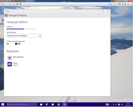 Accueil Logiciel Tuto : Changer la langue de windows 10 (Anglais en Français par exemple) Tuto : Changer la langue de windows 10 (Anglais en Français par exemple)zast·Logicieltuto·25 janvier 2015 à 11h30 zast 1share1 Suite à mon tuto d’hier comment mettre à jour windows 10 avec la nouvelle version 9926, une question a été posée pour changer la langue de Windows 10. Je l’ai trouvé pertinente et je me suis donc intéressé ce matin au sujet. C’est possible et je vais vous montrer comment faire. Dans ce tutorial, on va changer la langue de windows 10 de l’Anglais en Français. Mais vous pouvez faire cela pour n’importe quelle autre langue (si elle est disponible). En fin de tuto, vous retrouverez la version vidéo 🙂 Commençons : Faites en click droit sur le logo windows en bas et choisissez Settings (si vous ne le trouvez pas vous pouvez le taper dans la recherche) Cliquez sur Time and language Cliquez sur Region and language Choisissez Français Cliquez sur Options Maintenant vous pouvez télécharger le pack (cliquez sur Download) Il faut attendre plusieurs minutes Lorsque c’est fini, cliquez sur la flèche (à côté de Français)Voir aussizasttuto 28 septembre 2025 à 19h37Tuto Installation de Steam Link sur Amazon Fire TV Comme vous pouvez le voir, la langue par défaut sera le Français (si vous voulez remettre l’anglais il faudra cliquer sur English puis set as primary) Il faut relancer votre machine. Et voilà l’interface est en Français 🙂 [amazon_link asins=’B07PGJ9DBM,B07P7RW2TJ,B01759H62S’ template=’ProductCarousel’ store=’dvdalliance-21′ marketplace=’FR’ link_id=’f23eb02e-4d47-473e-939f-dd7d94011577′] N’oubliez pas de partager un maximum les tutos du site 🙂 Abonnez vous à ma page Youtube : https://goo.gl/pQqorSAbonnez vous à ma page Facebook : https://goo.gl/6uDJESSuivez moi sur twitter : https://goo.gl/E2DECB Et abonnez vous à la page Facebook La version vidéo des explications :