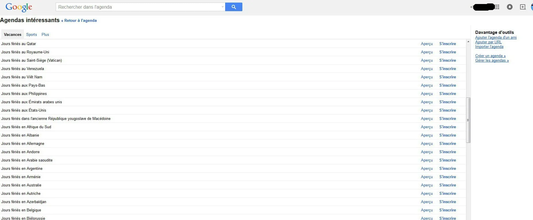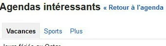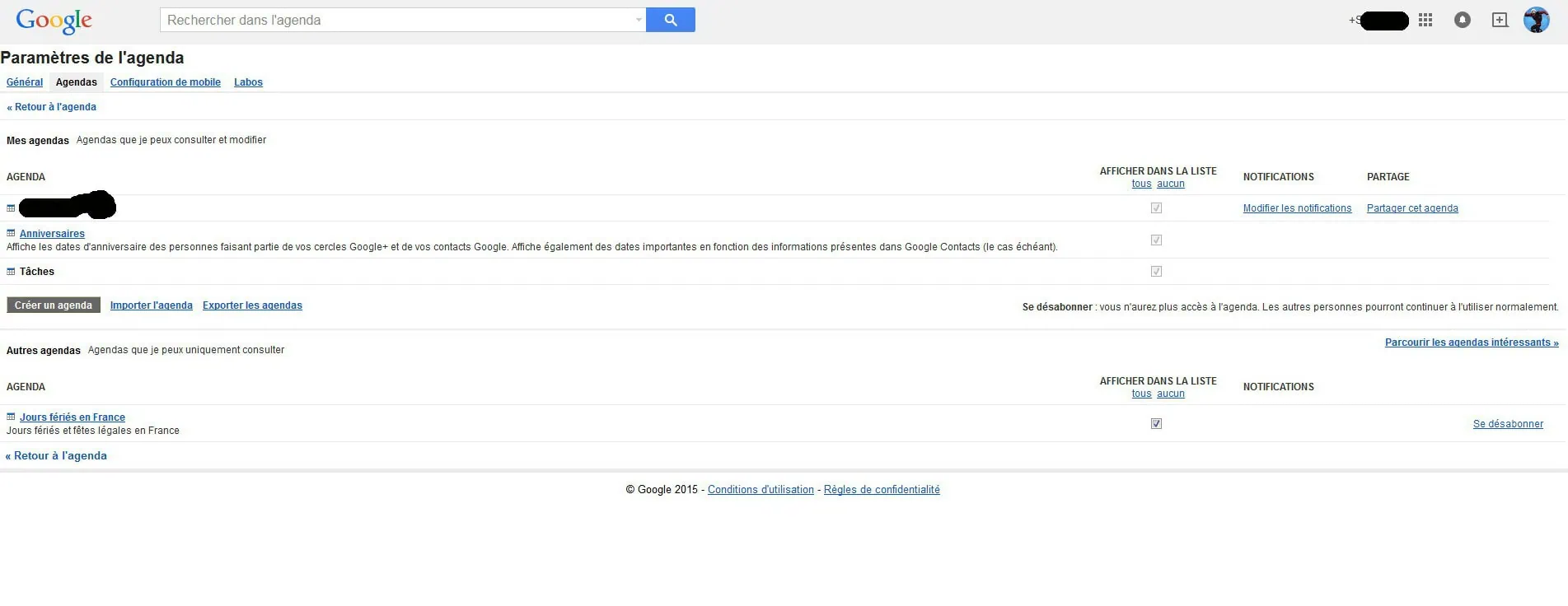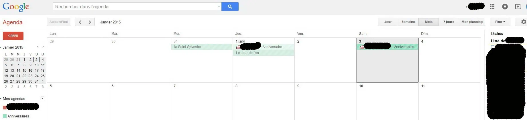 Accueil tuto Tuto : Enlever les anniversaires de Google Agenda Tuto : Enlever les anniversaires de Google Agendazast·tuto·27 janvier 2015 à 16h30 zast Depuis quelques mois, Google a ajouté les anniversaires de vos contacts dans votre calendrier Google Agenda (Google Calendar). Le problème c’est que vous ne connaissez pas obligatoirement les personnes et l’intérêt est vraiment limité … C’est dommage car personnellement je me sers souvent de Google Agenda via l’iphone ou le PC et cela m’énerve de voir que Google m’a obligé à ajouter des informations non voulues ! Voici un petit tuto qui vous permettra de supprimer les anniversaires de Google Agenda Vous devez cliquer sur paramètre (la roue à droite de l’écran) et choisir paramètres Vous cliquez maintenant sur Agenda Puis maintenant cliquez sur parcourir les agendas intéressants (en bas à droite) Vous cliquez maintenant sur Plus (en haut à gauche) Voir aussizasttuto 15 décembre 2019 à 10h24Comment installer des mods sur les Sims 4 Sur Anniversaires, vous faites se désabonner. C’est fini 🙂
