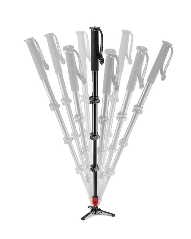 Certains de ces monopodes Manfrotto possèdent une hauteur d’action exceptionnelle (plus de 2 m), permettant une prise de vue plus souple, des points de vue impossibles à atteindre autrement et une fluidité panoramique en cas de place au sol très limitée, que la prise s’effectue à hauteur du regard ou en plongée.