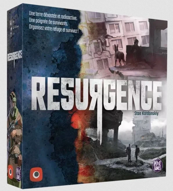 Accueil Critique Test et avis de Resurgence Benjamin Guimbert 1share1 Auteur :Stanislav KordonskiyEditeurs : Portal Games et Pixie GamesNombre de joueuses / joueurs :1 à 4Thèmes :Eurogame, programmation, bag building, placement d’ouvriers, gestion, développement, majorité, construction de moteur, Moscou, post-apocalyptiqueNotre score80 Test et avis de Resurgence de Stanislav Kordonskiy chez Pixie Games Resurgence est un jeu de Stanislav Kordonskiy, illustré par Oleg Volodin. Pour 1 à 4 joueurs/joueuses à partir de 14 ans pour des parties de 90 minutes.Édité par Portal Games, localisé et distribué par Pixie Games. Disponible depuis novembre 2024. La campagne de financement participatif s’est déroulée sur la plateforme Kickstarter du 10 novembre au 1er décembre 2023. 2027 contributeurs/contributrices ont engagé 87 060$. SommaireSynopsisComment jouer à ResurgenceFin de partieMon avis sur Resurgence Synopsis Suite à un conflit nucléaire mondial, l’humanité est plongée dans un monde en ruine, où des mutants rôdent, et qu’il faudra reconstruire. Chacun-e de vous est à la tête d’un groupe de survivants, développez votre Refuge, partez en ville à la recherche de ressources, recrutez de nouveaux membres, réalisez des missions, voici autant de moyens pour marquer des points de Victoire. Vous avez 6 manches pour marquer le plus de points de Victoire. Comment jouer à Resurgence Pour la 1ère phase, Piocher et Affecter, jouez en simultané. Commencez par transmettre le jeton 1er joueur à votre voisin/e de gauche. Défaussez ensuite la carte Événement précédente puis révélez-en une nouvelle. Elle vous indiquera de nouvelles instructions. Si un symbole Jumelles se trouve en bas à droite de la carte, placez le jeton correspondant dans le quartier indiqué. Piochez simultanément et secrètement un certain nombre de jetons Survivant en fonction du niveau de votre Refuge puis placez-les derrière votre paravent. Si vous n’en avez pas suffisamment dans votre sac, placez ceux qui se trouvent dans votre Zone de Repos pour continuer à piocher. Répartissez ensuite, toujours secrètement, les Survivants piochés dans les zones de votre plateau Affectation : Métro, Port ou Refuge. Cela indiquera les zones ou salles où vous les affecterez. Pour la phase 2, Commandement, retirez votre Paravent afin que vous puissiez toutes et tous découvrir les plateaux Affectation de vos adversaires. Comparez vos valeurs de Commandement pour chacune des zones : Métro, Port et Refuge. Votre Chef a une valeur de 3, les Spécialistes une valeur de 2 et le Journalier une valeur de 1. Si vous êtes majorité ou à égalité avec 1 autre joueur/joueuse avancez d’une case vers la droite sur la piste de Commandement correspondante. Si vous êtes toutes et tous à égalité, personne n’avance. Si vous avez une valeur de commandement de 4 ou plus, avancez d’une case supplémentaire. A chaque fois que vous passez sur une case Bonus, percevez-le. Phase 3 : Actions des Ouvriers, à partir du 1er joueur puis dans le sens horaire, placez l’un de vos Survivants, présent sur votre plateau Affectation, sur une zone du plateau qui correspond à sa zone d’affectation. Vous ne pouvez pas envoyer votre jeton dans un lieu qui contient déjà l’un des vôtres et vous devez envoyer un type de Survivant qui correspond au symbole sur le lieu visé. 1 Spécialiste peut remplacer un Journalier et votre Chef peut remplacer n’importe quel Spécialiste. Si un jeton Adverse ou Mutant se trouve sur le Lieu où vous souhaitez aller vous devez payer 1 Ressource ou 1 Approvisionnement, et ce pour chaque jeton présent sur ce Lieu. Si vous ne pouvez pas ou ne souhaitez pas placer votre Survivant dans une zone autorisée, placez-le dans la Zone de Repos de votre Refuge. Gagnez tout de même 1 Nourriture. Par contre vous ne pourrez pas activer de carte Survivant. Passez si vous n’avez plus rien à faire. Une fois votre jeton placé, effectuez une ou plusieurs des options suivantes et ce dans l’ordre de votre choix : Résolvez l’effet du Lieu où vous avez envoyé votre Survivant pour : gagner des Ressources, des Approvisionnements, pour récupérer une carte Mission du plateau principal et la placer au-dessus de votre plateau Refuge (3 Max, ), pour acheter 1 carte Survivant (dans ce cas payez le coût en Nourriture indiqué sous la carte, récupérez-la et placez le jeton Survivant correspondant de votre réserve dans votre sac) ou encore pour construire un nouveau projet dans votre Refuge en payant le nombre de Pièce détachée indiqué pour retirer un jeton Décombre correspondant à votre niveau de Refuge ou à un niveau inférieur, récupérez le bonus indiqué au dos du jeton. Activez 1 ou plusieurs de vos cartes Survivant éligibles, le symbole de la carte activée (en haut à droite) doit correspondre à votre jeton Survivant placé. Inclinez la carte à 90° lorsque vous l’avez activée. Une carte Survivant ne peut pas être activée lors du même tour où elle a été achetée. Si le jeton Événement se trouve dans le Quartier où vous vous rendez, appliquez l’effet. Accomplissez 1 Mission (pas plus), il vous faut avoir envoyé votre Survivant dans le Quartier indiqué au centre de la carte Mission, payez le coût indiqué à gauche puis percevez les récompenses indiquées à droite. Placez ensuite la carte dans la colonne correspondante sous votre plateau Refuge (même symbole Quartier que sur la carte). Vous aurez accès aux Missions avancées dès lors que vous avez atteint le niveau 3 dans votre Refuge. Les points de Victoire Immédiat sont inscrits dans une étoile aux bordures rouges et noires, ceux de fin de partie sont inscrits dans une étoile violette. Une fois que vous avez réalisé toutes vos actions, passez à la phase 4 : Entretien Placez tous vos jetons Survivant, précédemment utilisés, dans votre zone de Repos. Pour chaque Mission accomplie, placée sous votre