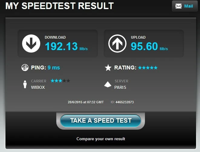 Accueil Critique Avis sur Wibox avec la fibre : déjà 2 ans Avis sur Wibox avec la fibre : déjà 2 anszast·CritiqueGeekHardware·28 juin 2015 à 10h05 zast Cela fait maintenant 2 ans que je suis connecté chez Wibox en fibre optique (voir mon premier article sur wibox). Je n’ai pas eu de problème de coupure de ligne significative pendant cette durée. Il y a eu peut être 2 ou 3 coupures d’une heure (ou moins) mais ce n’est pas vraiment grave car cela doit faire un uptime de 99,9% :). D’autres personnes que je connais sont aussi abonnées depuis moins de 2 ans et ils en sont aussi contents. Nous sommes sur le réseau fibre géré par la société Resoptic (Communauté de Communes de Maizières-lès-Metz). Vitesse de transfert Wibox (100 Mb/s) que je viens de faire aujourd’hui le 28/06/2015 : Si je reprends une capture de septembre 2014 : Les résultats sont les mêmes 🙂 Pour la version test de la fibre : Si je reprends une capture de septembre 2014 : Cela a beaucoup chuté au niveau du download mais vu que c’est une version test pour améliorer le réseau, c’est normal et je ne m’en inquiète pas. Au niveau de l’utilisation de la fibre, je m’en sers pour regarder ma TV via le cube Canalsat TNT (qui nécessite une ligne internet pour voir les chaines du bouquet et surtout le replay), pour travailler sur cinealliance.fr, musiquealliance.fr ou encore pour paradoxetemporel.fr :).Voir aussi97%zastCritiqueJeux vidéo 14 mai 2023 à 10h46Test et avis The Legend of Zelda: Tears of the Kingdom Lorsque j’upload des interviews ou des tutos sur youtube par exemple, l’envoi des vidéos se fait très rapidement même si elles font plus de 1 go :). J’utilise aussi l’abonnement premium de Spotify avec une lecture en qualité maximale. Mais là où j’ai aussi vraiment besoin de la vitesse de la fibre, c’est pour mon compte Hubic afin de sauvegarder mes photos. En effet, cela représente presque 2 To de photos ! Et il faut une ligne rapide pour pouvoir à chaque fois faire une mise à jour. D’ailleurs ces sauvegardes me permettent de garder les photos au format RAW en plus de la version JPG, de garder les rushs de mes vidéos réalisés avec les caméras du style Action sports et bien entendu de garder mes vidéos d’interviews en version brut et en version modifiée :). Pour les jeux, j’en fais moins souvent (plus assez de temps) mais les enfants ne se plaignent pas de la vitesse. Je suis donc à 100% content de Wibox via Resoptic 🙂