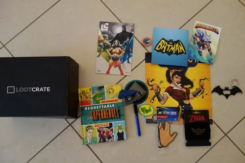 Accueil Critique Réception box Lootcrate juillet 2015 Réception box Lootcrate juillet 2015zast·CritiqueEnfantGeek·2 août 2015 à 11h48 zast C’est la box de geek Lootcrate du mois de juillet 2015 qui est arrivé. Elle est assez intéressante et c’est encore une fois mon fils qui a récupéré une partie des goodies geek. Au niveau du contenu de la box de geek Lootcrate du mois de juillet 2015 : – Une belle figurine Batman – Un ouvre bouteille Batman – Un désodorisant auto Star Trek – Loot Crate Magazine – Un badge Heroes 2 – Le livre Regrettable Super Heroes de Jon Morris – Un poster Wonder WomanVoir aussizastCritiqueJardinageRobotique 10 avril 2016 à 19h56Avis Première tonte 2016 avec le robot tondeuse husqvarna automower 330x – Un bracelet éponge poigné Zelda Quelques photos : En vidéo pour les personnes qui veulent :