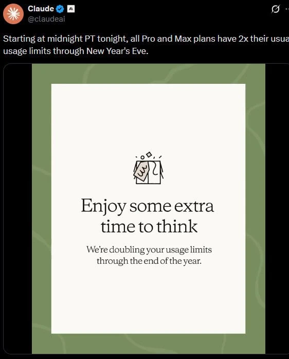 Accueil Geek Claude double les limites d’utilisation pour les fêtes avec l’opération Santa Claude zast On vous annonce une bonne nouvelle pour les utilisateurs de Claude, l’assistant IA d’Anthropic. Depuis minuit heure du Pacifique ce soir (soit 9h du matin en France le 25 décembre), tous les abonnés Pro et Max voient leurs limites d’utilisation doublées. Et ça dure jusqu’au réveillon du Nouvel An. Concrètement, si vous avez un forfait Pro à 20$ par mois ou un forfait Max (à partir de 100$ par mois), vous avez droit au double de ce que vous utilisez normalement. Pas besoin de code promo ou de manipulation particulière, ça s’active tout seul sur votre compte. C’est une opération baptisée « Santa Claude » par Anthropic. Pour ceux qui bossent sur des projets gourmands avec l’IA ou qui utilisent Claude Code pour du développement, c’est plutôt cool d’avoir cette marge supplémentaire pendant les vacances. On peut enfin tester des trucs plus lourds sans se prendre les rate limits dans la figure toutes les deux heures. Les comptes gratuits ne sont pas concernés par cette promo. C’est uniquement pour les abonnés payants.Voir aussizastCritiqueEnfantGeek 13 juin 2011 à 08h47Réveil Kid’Sleep Clock Je trouve que c’est une initiative sympa de la part d’Anthropic, surtout pour ceux qui profitent des fêtes pour avancer sur leurs projets perso. Personnellement pour le code, j’utilise vscode avec Github Copilot donc je n’en profite pas :(.