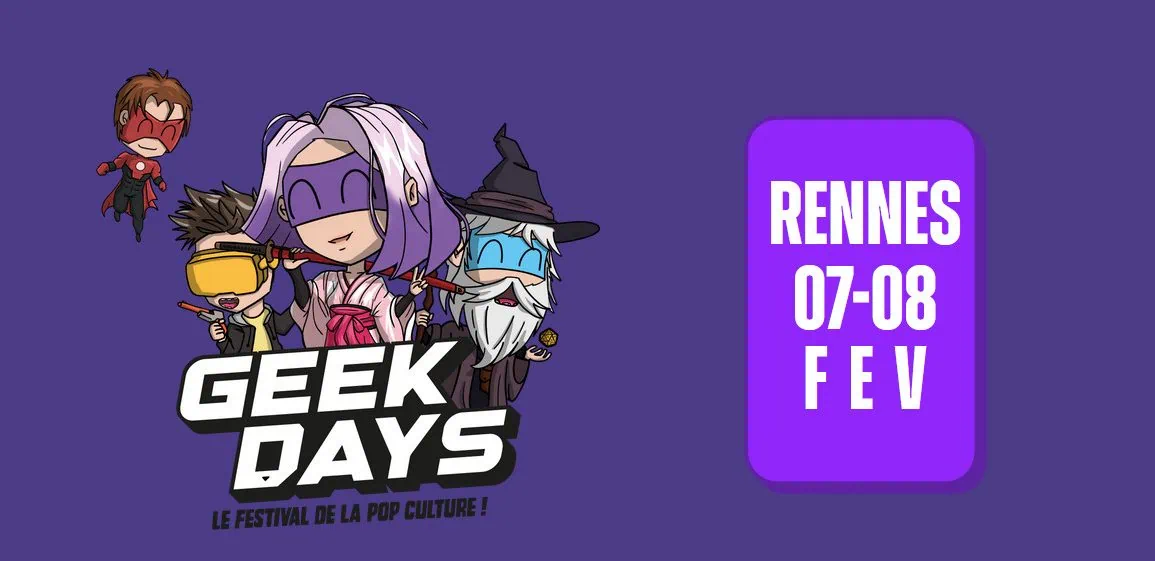 Accueil Festival Geek Days 2026 : le rendez-vous culte de la pop culture revient à Rennes les 7 et 8 février zast Les Geek Days font leur grand retour au Parc Expo de Rennes les 7 et 8 février 2026. Au programme : 150 exposants, une Artist Alley massive, des tournois gaming, du cosplay, des légendes du doublage français et une expo vintage années 70-90. On fait le tour de ce qui vous attend. C’est à Rennes que démarre l’année geek. Pour cette nouvelle édition, les Geek Days attendent près de 15 000 visiteurs sur deux jours pour une immersion totale dans les univers du jeu vidéo, du manga, de l’animation, du cosplay et de la création artistique. Un événement qui s’adresse autant aux passionnés qu’aux familles et aux curieux. L’Artist Alley, le cœur créatif du festival C’est clairement l’un des gros points forts des Geek Days. L’Artist Alley réunit pas moins de 109 artistes, illustrateurs, auteurs et créateurs, dont 24 talents bretons. L’occasion de découvrir la création indépendante et d’échanger directement avec les artistes. Pour ceux qui aiment repartir avec des pièces uniques, c’est l’endroit où il faut traîner. Gaming, cosplay et immersion totale Côté gaming, les organisateurs frappent fort avec une compétition inédite Pokémon TCG Pocket (la version mobile) et un tournoi Super Smash Bros Ultimate sur scène. De quoi animer les deux jours. Le cosplay est aussi à l’honneur avec un espace entièrement dédié : exposition de costumes réalisés par des passionnés, défilé et concours qui récompensera les deux meilleurs cosplayeurs. Les fans de Star Wars ne seront pas en reste avec des combats et initiations au sabre laser, des défilés en costumes et une expérience Stargate avec photocall et décors provenant de véritables tournages. Les amateurs de maquettes japonaises pourront profiter d’une exposition et d’ateliers de construction Gundam. Et pour les nostalgiques, une exposition vintage dédiée aux années 1970 à 1990 propose un corner inédit où les visiteurs pourront faire estimer leurs objets de collection. Si vous avez des vieux jouets qui dorment au grenier, c’est peut-être le moment de les sortir. Les voix cultes de la pop culture C’est l’un des gros attraits de cette édition. Cinq figures du doublage français seront présentes pour des conférences et des rencontres sur scène :Voir aussizastFestival 6 février 2026 à 17h08Japan Mania Festival 2026 : Mini World Lyon remet le couvert pour les fans de pop culture japonaise Gérard Surugue, la voix derrière le mythique « Quoi d’neuf Docteur » de Bugs Bunny mais aussi Joe Dalton et Garfield. Patrick Préjean, qui donne vie au chat Sylvestre, à Tigrou et à Nigel de La Famille Delajungle. Boris Rehlinger, voix du Chat Potté, du Joker, de Batman et du Jason Statham de Transporteur. Grégory Laisné, le comédien français ayant doublé le plus d’animés avec plus de 121 séries de japanimation à son actif (Connie dans L’Attaque des Titans, Shinra dans Fire Force, Cavendish dans One Piece). Et Pascale Chemin, gameuse et comédienne de doublage, récemment invitée dans la célèbre trilogie Mass Effect en tant que Commandant Shepard. D’autres invités à ne pas manquer Les Geek Days accueillent également Julien Bardakoff, le créateur à l’origine de Salamèche, Carapuce, Bulbizarre et de plus de 200 autres personnages. Dina, alias TheFairyDina, coach Just Dance 2025 et championne internationale, sera là pour faire vibrer la scène. Et Davy Mourier, créateur de La Petite Mort et figure incontournable de YouTube, complétera le plateau. Infos pratiques Les Geek Days 2026 se tiennent les 7 et 8 février 2026 au Parc Expo de Rennes. L’événement est ouvert à tous, familles et curieux compris. Billetterie & informations : www.geek-days.com