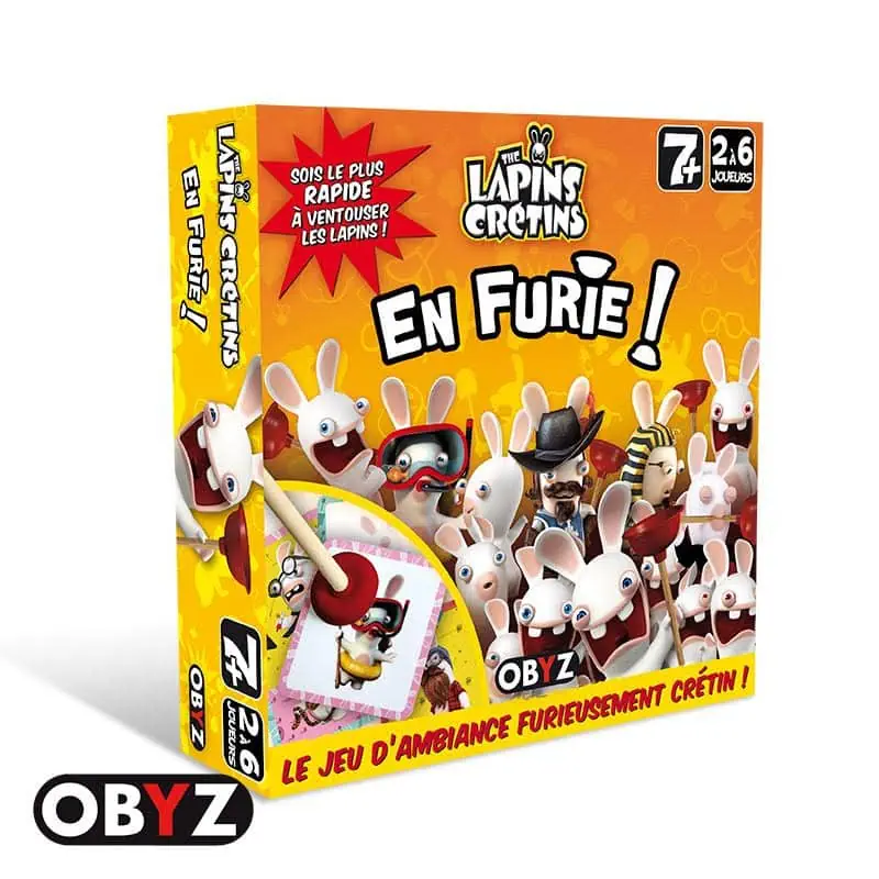 Accueil Enfant Lapins Crétins En Furie Lapins Crétins En Furiezast·EnfantJeux·5 octobre 2015 à 22h24 zast Les lapins crétins reviennent dans un nouveau jeu de société avec les lapins crétins en furie. Cette fois, on dispose 9 cartes face « Lapins » sur le tapis de jeu. Chaque joueur se munit de sa ventouse.Si une carte OBJET est retournée, chaque joueur doit ventouser le plus rapidement possible les cartes qui comprennent cet attribut (ex : une tapette). L’attribut peut être facilement identifiable, mais peut aussi être caché dans le fond ou les bords de la carte. La pioche comprend également des cartes ACTION, comme la carte « BWAAAAH! » qui demande au joueur de crier « Bwaaaah! » à chaque fois qu’il ventouse une carte. C’est encore un jeu qui permettra à toute la famille de rire ensemble.Voir aussi85%Benjamin GuimbertCritiqueJeux 2 octobre 2025 à 13h24Test et avis de Duel Pour Cardia N’hésitez pas à relire notre avis sur le jeu précédent les Lapins Crétins : Le Gros Défi