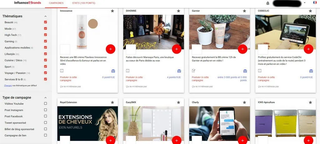 Accueil Actualite Influence4brands la première plateforme gratuite collaborative entre influenceurs et marques Influence4brands la première plateforme gratuite collaborative entre influenceurs et marqueszast·Actualite·28 mars 2017 à 19h29 zast La startup française Influence4brands est une plateforme permettant aux marques de collaborer directement avec les influenceurs. Du côté des influenceurs, Influence4Brands permet :• d’accéder aux meilleures campagnes mode, beauté, high-tech, jeux vidéo, lifestyle…• de monétiser son influence Youtube, Twitter, Facebook, Instagram ou son blog• de recevoir des produits des marques et annonceurs gratuitementPour les marques ou agences, Influence4Brands permet :• d’accéder aux plus grands influenceurs sur tous les réseaux sociaux avec leurs statistiquesd’audience• de discuter en direct avec les influenceurs• de maîtriser leur budget en définissant leur prix (voire en créant une campagne gratuite) Avis sur Influence4Brands : Je reçois souvent des mails pour savoir comment tester des produits, monétiser son blog et rentabiliser son blog. C’est pour cela que je parle de cette plateforme. Je me suis inscrit mais je n’ai rien validé donc je ne peux pas en dire plus sur cette plateforme. Mais voici la page que vous aurez une fois connectée. Voir aussizastActualiteSecurité 9 mai 2019 à 10h43Les caméras Blink XT2 Le site officiel : http://influence4brands.com/