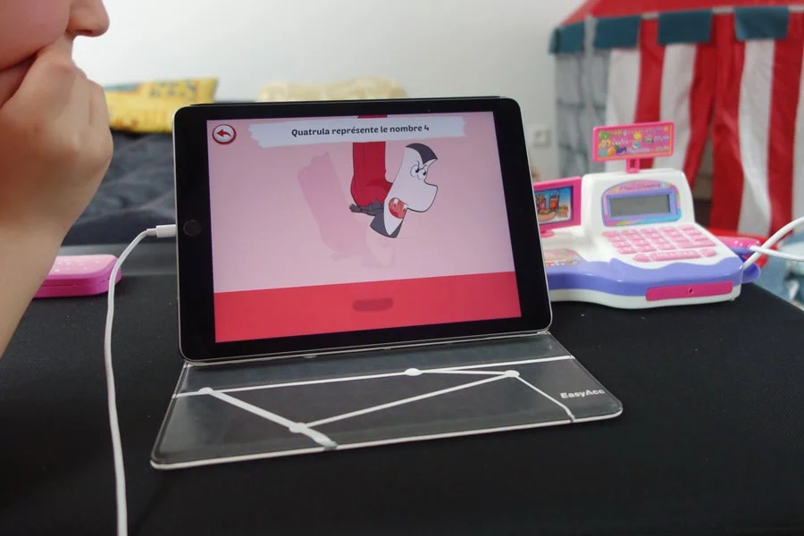 Accueil Critique Test de mathemagics Multiplication et les mathématiques deviennent un jeu d’enfant Test de mathemagics Multiplication et les mathématiques deviennent un jeu d’enfantzast·CritiqueEnfantLogiciel·15 mai 2017 à 19h39 zast L’application mathemagics Multiplication permet aux enfants de découvrir de manière ludique l’apprentissage de la multiplication. Pour apprendre les multiplications, l’application utilise l’apprentissage visuel à travers des mini histoires afin de faciliter la mémorisation. En effet, ces histoires sont drôles et bien dessinées. On est loin de cette manière d’un apprentissage scolaire tel que nous le connaissons. Pour voir si cela fonctionne vraiment, nous avons demandé à notre fils Jéremy 6 ans qui est élève au CP de tester l’application. Il n’a jamais appris les multiplications ce qui en fait un parfait testeur. Tout d’abord, nous avons lancé le module « Je découvre » qui présente les personnages nombres avec un petit jeu. Ensuite, nous sommes passés par le module « J’apprends ». Jeremy a choisi une table de multiplication en l’occurrence celle de 2. Il a choisi chaque multiplication comme par exemple 2×3 et à chaque fois une animation drôle lui apprend le résultat. Après avoir visualisé complètement la table, Jéremy a pu passer à l’étape « Je joue ». Il doit choisir la bonne réponse parmi les 3 proposés. Et je dois avouer que cela fonctionne parfaitement ! Nous avons été étonnamment et agréablement surpris du résultat, car Jéremy a fait presque un sans foute sur la table de 2 alors qu’auparavant (avant d’utiliser l’application) il n’avait jamais fait de multiplication. L’autre avantage c’est que l’enfant gagne des points et cela lui permet d’acheter une maison virtuelle avec le mobilier qui va avec. Cette application mathemagics Multiplication est magique, car notre enfant n’a pas fait la tête en apprenant la multiplication, car il a trouvé que c’était très ludique et il était passionné par les petites histoires puis par le challenge pour trouver les bonnes réponses. Il existe une version grand public et une version spéciale pour les écoles. Version grand public Version Apple : http://bit.ly/SCE4GeoVoir aussizastCritiqueEnfantGeek 13 juin 2011 à 08h47Réveil Kid’Sleep Clock Version Google : http://bit.ly/E4Google Version Amazon : http://bit.ly/FRSCE4 Version « école » comprenant plus de fonctionnalités (accès direct aux différents modules, suivi personnalisé, 40 profils disponibles…) : Version Apple : http://bit.ly/SCE4SVGeo Version Google : http://bit.ly/E4SVGoogle Le test en vidéo de Mathemagics Multiplication :
