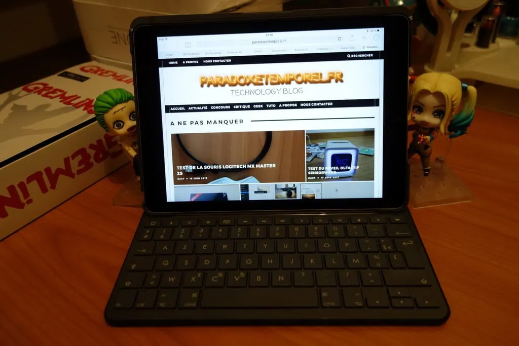 Accueil Critique Test de l’étui clavier Logitech Slim Folio Test de l’étui clavier Logitech Slim Foliozast·CritiqueGeekHardware·19 juin 2017 à 22h39 zast Voici mon test de l’étui clavier Logitech Slim Folio. Cette housse protectrice pour ipad 9.7 pouces est équipée d’un clavier AZERTY. Lorsque l’on met l’ipad dans l’étui, celui-ci reste assez plat. L’ipad s’y insère facilement. Il faut ensuite synchroniser en bluetooth le clavier à l’ipad. Il faudra taper le code afficher sur le clavier et appuyer sur Entrée. Lorsque vous taperez le code, pensez à rester appuyer sur la touche SHIFT pour bien sélectionner les chiffres :). Il n’y a pas besoin de recharger le clavier. La batterie est annoncée avec une durée de vie de 4 ans ! Le capteur de proximité de l’IPAD n’est pas perturbé par l’étui. Lorsque vous le refermerez, l’ipad s’éteindra automatique et il s’allumera lorsque vous l’ouvrerez. Le clavier logitech est pratique et les touches sont agréables. J’avais déjà utilisé des claviers externes pour l’ipad mais celui ci est vraiment supérieur et surtout intégré. L’ipad tient d’ailleurs bien lorsqu’on le met en position pour écrire. On peut ainsi écrire ses mails ou sur les réseaux sociaux avec un vrai confort. C’est identique si vous voulez aller sur internet car c’est plus plaisant d’utiliser le clavier.Voir aussiWolverineCritiqueJeux 2 octobre 2025 à 17h59Test et avis de Mind Cycling Celui ci possède aussi quelques touches de raccourcis comme celui de la recherche par exemple. Cet étui est de très bonne qualité et je dois avouer que je n’ai rien de négatif à dire cette house Slim Folio de Logitech. C’est simple, elle a remplacé notre ancienne housse immédiatement. La housse est disponible chez Amazon.fr [amazon_link asins=’B071VJ7CBT’ template=’ProductCarousel’ store=’dvdalliance-21′ marketplace=’FR’ link_id=’57adeedc-552f-11e7-bab4-bfb4401f602f’]