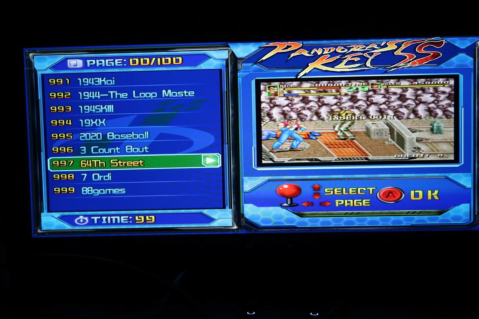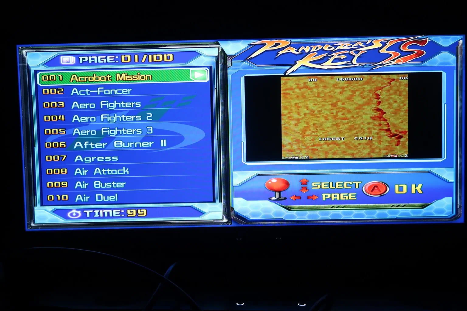 Accueil Critique Test de la Pandora’s Box 5s Test de la Pandora’s Box 5szast·CritiqueGeekHardwareJeux·30 novembre 2017 à 23h31 zast Je vous propose de retrouver le test de la Pandora’s Box 5s ou Pandora’s key 5s. Pandora’s key 5s C’est quoi une pandora’s box Pour vous résumer rapidement, la pandora’s box 5s est une console d’arcade dédiée au retro gaming qui contient 999 jeux. On n’a pas besoin d’ajouter une autre console ou un raspberry pi pour y jouer car elle se suffit à elle même. Elle est équipée de 2 sticks permettant de jouer à 2 joueurs en même temps ainsi que de 6 boutons par joueur et 2 boutons supplémentaires pour accéder aux menus ou pour jouer (bouton Start). C’est donc comme une borne d’arcade sans l’écran. Pandora’s box 5s La machine est équipée d’une prise HDMI et d’une prise VGA pour les branchements ainsi que de prise USB. On retrouve aussi une sortie audio et un petit bouton de configuration. Je l’ai utilisé uniquement en hdmi. Elle fonctionne bien sur un moniteur ou encore sur un vidéoprojecteur. De plus, on peut l’utiliser directement comme manette de jeux et donc manette d’arcade sur un PC qui tourne sous windows. Dans ce cas, vous n’aurez pas besoin de la connecter à une source d’alimentation. Il suffira juste de la connecter en usb sur votre PC. A la fin de l’article j’ai ajouté une vidéo pour montrer comment elle fonctionne. Pour la faire fonctionner, il suffit de l’allumer et c’est parti. La borne d’arcade s’illumine et on entend malheureusement un bruit de ventilo. Ce petit souci de bruit se fait vite oublier, car on se retrouve vite entrainé dans les différents jeux. Après un petit générique, on arrive sur un menu qui permet de choisir les jeux. Il faut dire qu’il y a 999 jeux et qu’on a le choix. On en retrouve 10 jeux par pages. L’interface du menu est pratique, car on voit pour chaque jeu une mini présentation en vidéo de celui-ci. Il suffit de faire défiler les jeux et de valider celui qui vous intéresse. Ensuite, il y a un petit chargement de plusieurs secondes et le jeu se lance. On retrouve vraiment bien les sensations d’une borne d’arcade. En effet, les sticks et les boutons sont de très bonnes qualités. Les boutons tiennent bien mais il faudra vérifier après des 100 aines d’heures d’utilisation. Dans tous les cas, le constructeur a fourni 2 boutons en suppléments. La borne étant lourde, on ne risque pas de la faire glisser facilement. Pandora box 5s Le choix des jeux est énorme et on se retrouve à jouer à des jeux pour lesquels on avait dépensé beaucoup d’argent sur la borne lorsque j’étais jeune. Par exemple c’est le cas pour le jeu double dragon :). Les graphismes ne sont pas améliorés et vous avez donc des jeux qui sont correctes et d’autres qui ont mal vieilli. Cependant, lorsqu’on y rejoue maintenant on retrouve vite le plaisir qu’on avait à l’époque. Il est même possible de tricher aux jeux en appuyant sur le bouton configuration qui se trouve à l’avant de la console. Cette console fera le bonheur des amateurs de rétro gaming. C’est plus pratique que de monter un raspberry pi 3 avec recalbox, car l’intérêt de la pandora box 5s réside beaucoup dans ces manettes. Ici vous ne retrouverez pas des jeux de console (comme sur une recalbox) mais uniquement ceux des bornes d’arcade. On retrouve tous les types de jeux que cela soit des jeux d’arcade, de combat, des shoot them up, … Vous trouverez votre bonheur. Je ne lui ai pas trouvé de points négatifs, car elle est facile à utiliser et même mes enfants ont bien voulu laisser tomber un peu la playstation 4 pour se mettre à jouer à des jeux old schools. Ceux qui préfèrent la commande via Amazon (depuis la France) [amazon_link asins=’B01IJBDHO2,B075XLQZB4,B07DJ9N4N8,B07G59PXXR’ template=’ProductCarousel’ store=’dvdalliance-21′ marketplace=’FR’ link_id=’172b66a8-f610-11e8-853a-2b4f367d3b4f’] Elle est disponible pour moins de 97 euros sur Gearbest avec 999 jeux en promotion le 17/11/2018 Elle est disponible pour 120 ou 130 euros sur Gearbest prise européenne avec 1220 jeux Le test en vidéo de la Pandora’s Box 5s ou Pandora’s key 5s : Utilisation de la Pandora’s Box 5s ou Pandora’s key 5s comme manette d’arcade et controleur de jeux avec un Pc Windows 10 La liste des jeux de la pandora’s box 5 1941194219431943Kai1944-The Loop Master1945KIII19XX2020 Baseball3 Count Bout64Th Street7 Ordi88gamesAcrobat MissionAct-FancerAero Fighters Aero Fighters 2Aero Fighters 3After Burner IIAgressAir AttackAir BusterAir DuelAir GalletAirwolfAlien ChallengeAlien StormAlien SyndromeAlien Vs PredatorAliensAlley MasterAlpha Mission IIAlpone SkiAltered BeastAmbushAmidarAndro DunosAngel KidsAquajackAquariumArabian Magic ArcadiaArgusArkanoidArmed Police BatrideArmored WarriorsArt Of FightingArt Of Fighting 2Art Of Fighting 3ASO-Armared SOAsterixAsterixAstro BlasterAstyanaxAsuka & AsukaAsura BladeAsylumAtomic PointAurailAvenging SpiritB.C. StoryBack Street SoccerBad LandsBallon BrothersBang Bang BustersBang Bead Bank PanicBaradukeBaseball StarsBaseball Stars 2BatmanBatsugunBattlantisBattle BakraidBattle ChopperBattle CircuitBattle CityBattle Flip ShotBattle GareggaBattle K-RoadBay RouteBeast BustersBee StormBells & WhistlesBerlin WallBest Of BestBestriBig KarnakBig StrikerBio-hazard BattleBiomechanical Toy Bionic CommandoBio-Ship PaladinBlack HeartBlack PantherBlack TigerBlad MasterBlandiaBlaze OnBlazing StarBlock BlockBlock CarnivalBlock HoleBlock OutBlockjoyBlomby CarBlood BrosBlood WarriorBloxeedBlue HawkBlue’S JourneyBody SlamBomb JackBomb KickBomber Man WorldBombjack Twin Bonanza BrosBonk’s AdventureBonze AdventureBoogie WingsBottom Of The NinthBoulder DashBouncing BallsBowl-O-RamaBowl-O-RamaBreakersBreakers RevengeBubble 2000Bubble BobbleBubble Bobble IIBucky O’HareBullfightBurger timeBurglar XBurning FightBurning FightBurnin’Rubber