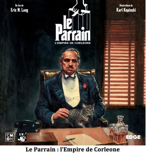 Accueil Jeux Le Parrain, revivez le film sur jeu de plateau chez Edge Entertainment Le Parrain, revivez le film sur jeu de plateau chez Edge EntertainmentBenjamin Guimbert·JeuxCritique·15 mars 2018 à 22h03 Benjamin Guimbert Le Parrain : l’Empire de Corleone Ressortez votre vielle Thompson ! Les rues de New York sont devenues ludiquement dangereuses J Jeu D’Eric M. Lang, illustré par Karl Kopinski, Richard Wright, Nicolas Fructus. De 2 à 5 joueurs, à partir de 14 ans pour des parties de 60 à 90 min. Version française éditée chez Edge Entertainment et distribuée par Asmodee. Le jeu est disponible depuis août 2017. Eric M. Lang frappe fort avec ce jeu dont la thématique n’est plus à présenter. Dans les années 1950, de nouvelles Familles appartenant à la Mafia veulent étendre leur contrôle sur le territoire New yorkais, mais Don Vito Corleone, le Parrain, est toujours là pour veiller au grain. Pose d’ouvriers, combinaison de cartes et majorité sont au menu. Vous manipulerez de superbes figurines représentant les Hommes de Main, leurs pieds scellés non pas dans du béton mais sur un socle carré en plastique. Ils ne peuvent Racketter Directement qu’une seule Affaire, capacité affichée dans la partie inférieure de la tuile. Le Don et les autres membres de sa famille, Consigliere et l’Héritier(e), sont chacun sur un socle rond. Ils sont suffisamment intimidants pour Racketter, cette fois-ci Indirectement (partie supérieure des tuiles Affaires) toutes les Affaires situées dans 2 à 3 quartiers dits Territoires. Vous leur ferez une offre qu’ils ne pourront pas refuser ! Les Rackets vont vous rapporter des Marchandises Illégales (Argent Sale, des Armes, de l’Alcool, des Narcotiques), de l’Argent, de nouveaux Boulots, ou vous permettre de planquer votre Argent dans votre valise. En plus d’exécuter l’action correspondant au lieu du racket, il y a un deuxième enjeu, qui n’est pas moindre, celui de prendre le Contrôle du quartier par la majorité. Dans l’exemple ci-dessous, le joueur violet a la majorité sur le Territoire de Brooklyn, il place donc un Marqueur de Contrôle par dessus le marqueur vert. Lors d’un racket direct fait par un autre joueur, le joueur violet pourra bénéficier des mêmes capacités. En fin de partie, le joueur majoritaire sur un Territoire recevra 5$ de bonus. Vous devrez combiner des cartes Marchandises Illégales récupérées lors de vos rackets pour accomplir des Boulots, ceux-ci vous rapporteront de l’argent. Par la suite, il sera important de mettre votre argent à l’abri dans votre valise. Central Park et d’autres Affaires vont vous permettre de laver tout cet argent pas très propre. Exemple d’un Set Up de départ, attention celui-ci change en fonction du nombre de joueurs. Partie à 3 joueurs : 1 Valise en métal, les 9 Marqueurs de Contrôle à la couleur de sa famille, 3 figurines de la Famille (le Consigliere et l’Héritier(e) interviendront plus tard dans la partie) et 2 figurines Hommes de Main ainsi que 1×1$, 1×2$, 1×3$ et 2 Boulots. Pour le plateau : 3 Boulots Publics et 2 cartes Allié. La partie se déroule en 4 Actes : Chaque Acte est divisé en 5 Phases : . Ouverture d’une Nouvelle Affaire, ajoutez une tuile Affaire sur le plateau, bleue ou rouge en fonction de l’Acte où vous vous trouvez. Les tuiles rouges sont plus fortes et elles amènent une nouvelle marchandise illégale : les narcotiques (comme un joker, remplace n’importe quelle autre marchandise illégale). . Affaire de Famille : pose de vos figurines et alliés si vous en possédez / Accomplir un Boulot seulement s’il vous reste au moins 1 figurine. . Guerre de Territoire : Comparer l’influence, le joueur ayant une majorité de ses figurines sur un Territoire placera son marqueur d’influence sur celui-ci. . Corruption : Vous allez pouvoir corrompre les grosses légumes de la ville comme le Maire ou encore le Chef de la Police. Pour ce faire, vous miserez secrètement la somme que vous souhaitez allouer à votre pot-de-vin avec l’argent de votre valise. . Tribut au Don : Chaque Acte impose une limite de cartes en Main, si vous en possédez plus donner les au Don. On peut rajouter une 6ème phase, celle de l’Entracte. Ce n’est ni plus ni moins que la mise en place pour l’Acte suivant. Un petit moment de répit avant le retour des hostilités. Lorsque vous posez une figurine puis effectuez le racket, ou que vous jouez un allié ou que vous révélez un Boulot terminé votre tour sera terminé : 1 action = 1 tour. La phase Affaire de Famille prendra fin lorsque tous les joueurs auront joué les figurines de leur famille et Hommes de Main. Il donc important de jouer votre carte alliée ou de valider un boulot avant de vous retrouver sans figurines familiales. Je dis ça, je dis rien ;-). Mais n’oublions pas la thématique, à quoi bon impliquer la Cosa Nostra s’il n’était pas possible de descendre, de dessouder, de laisser sur place, d’envoyer au fond de l’Hudson une figurine adverse. Les plongeurs de grand fond ne referont surface qu’à la Phase d’Entracte. Le gagnant sera le joueur ayant le plus d’argent blanchi en fin de partie. Il vous faudra additionner toutes les cartes Argent de votre valise. Puis rajouter les bonus de 5$ par territoire où vous êtes majoritaire (plus grand nombre de marqueurs de Contrôle) et les bonus de 5$ par carte Boulot d’une même couleur où vous êtes majoritaire. Note importante : . Impossible de faire de la monnaie avec les différents billets. . S’il n’y a plus de cartes dans une pile de marchandises illégales, le stock est épuisé tant qu’un joueur ne se défausse pas de ce type de carte.Voir aussiWolverineCritiqueJeux 29 octobre 2025 à 12h54Test et avis des extensions zombicide Terrorcatta et Crossfire . Dès qu’une carte Argent est placée dans votre valise, vous devez annoncer le montant. Mémorisation, si vous souhaitez connaître le mo